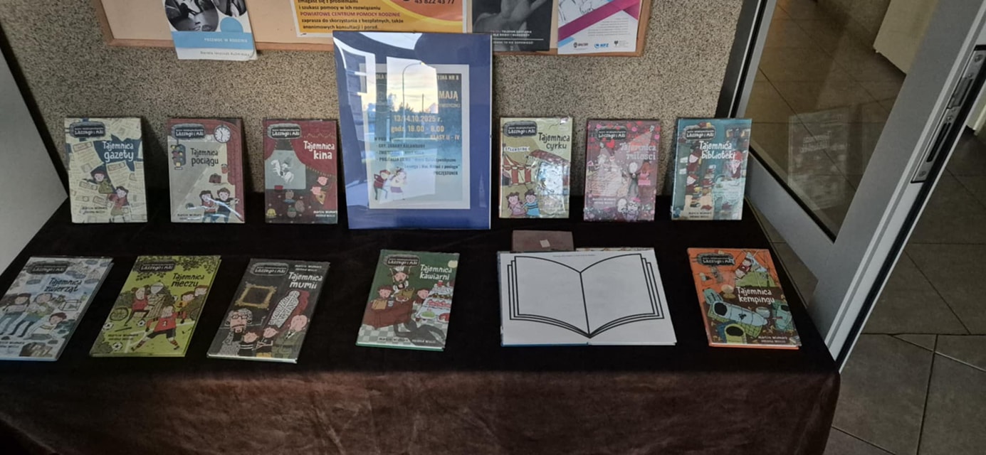 Proste zagadki literackie i logiczne (np. odszukanie cytatu, dopasowanie ilustracji do tytułu, ukryty klucz w książce).