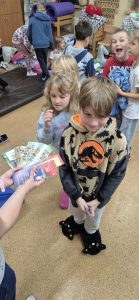 Czytanie z podziałem na role – np. fragment znanej książki (dzieci i nauczyciele wcielają się w bohaterów, można dodać rekwizyty).