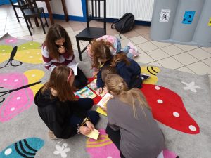 Natomiast 17 października klasy 4-8 świętowały Dzień Bibliotek, uczestnicząc w grach i zabawach czytelniczych. Uczniowie układali wiersze, pisali opowiadania, rozwiązywali zagadki i quizy, liczyli półki, przeszukiwali słowniki, tworzyli plakaty, gry i plan biblioteki marzeń. Było mnóstwo śmiechu, dobrej zabawy i... bałaganu. Ale było warto!