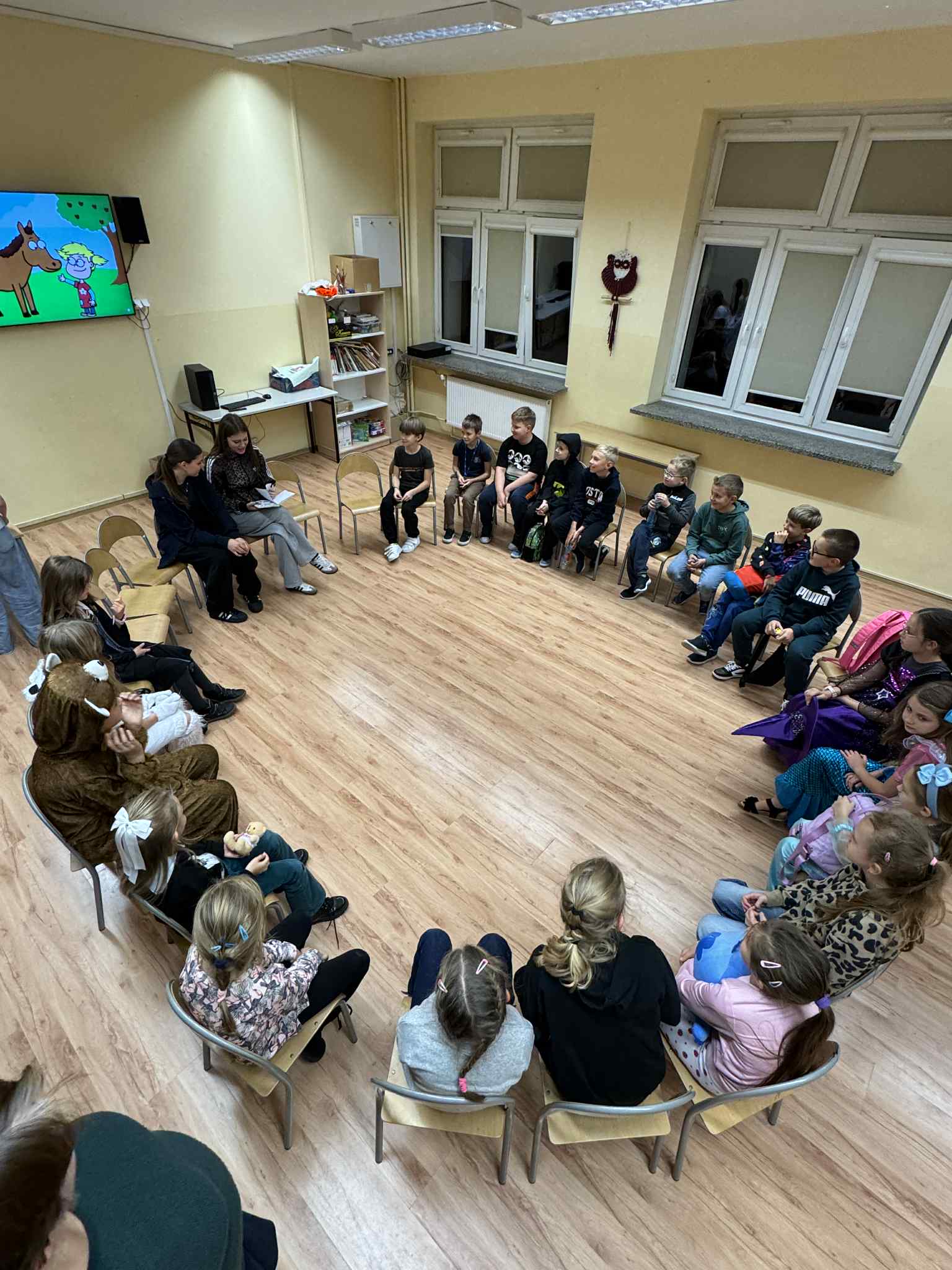 Nasza NOC BIBLIOTEK rozpoczęła się punktualnie o 18.00. Na wydarzenie przybyły dzieci z klas 1-4 oraz wolontariusze, nauczyciele biblioteki.