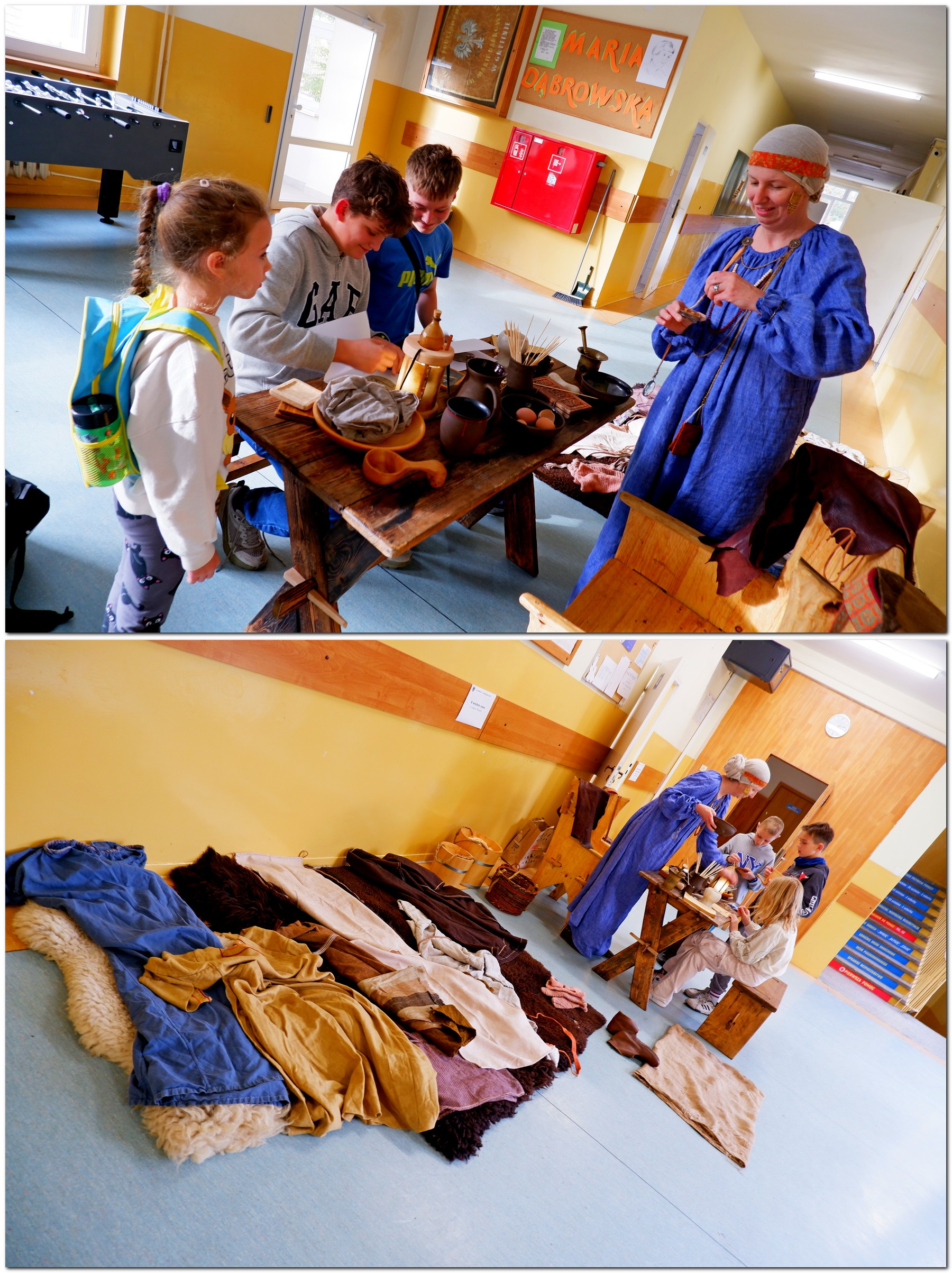 Po spotkaniu nadszedł czas na działanie w pełnym znaczeniu tego słowa! Szkolne korytarze i klasy zamieniły się w przestrzeń pełną zagadek, eksperymentów i przygód. Było i coś dla ciała, i coś dla umysłu. Coś związanego z historią i tradycją oraz coś zupełnie nowoczesnego! W Escape Boxie – Sekrecie tajemniczej skrzyni pod opieką pań: Żanety Sobczak i Edyty Kanieckiej uczestniczki i uczestnicy z zapałem rozwiązywali łamigłówki, współpracując, by odkryć hasło i zdobyć skarb ukryty w skrzyni. Tuż obok w Wehikule czasu dzięki pani Marii Swiątek można było cofnąć się o tysiąc lat, spróbować pisania gęsim piórem lub na glinianych tabliczkach i przywdziać dawne stroje – prawdziwa podróż do przeszłości!