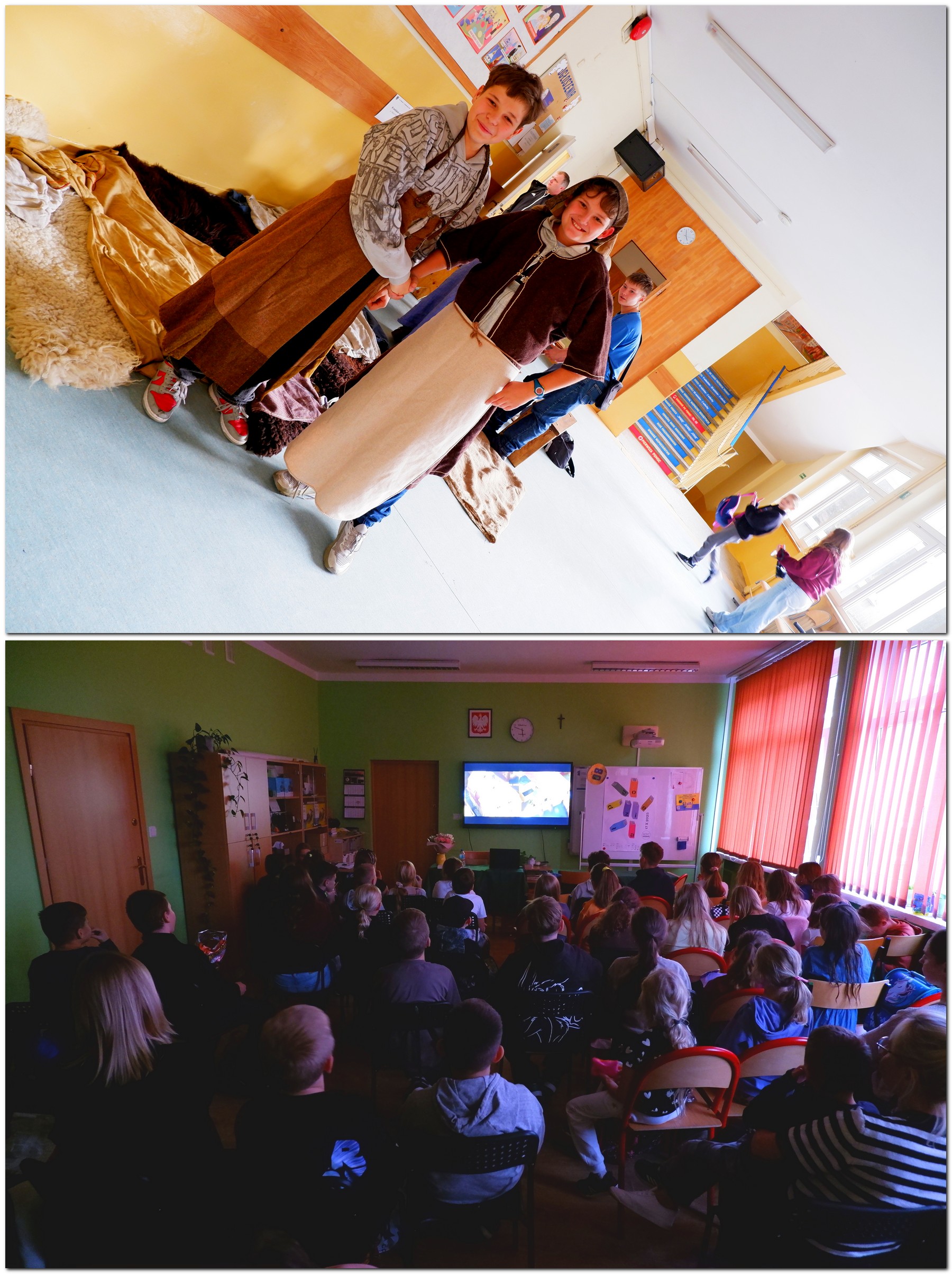 Nie zabrakło też podróży VR, które dzięki pani Annie Jerce przeniosły nas w najdalsze zakątki świata – od gorącego safari po lodowatą Antarktydę. W pracowni rękodzieła pod czujnym okiem pani Anny Butryn powstawały kolorowe dynie z tkaniny i woreczki na ryż, tworzone wspólnie z wielkim zapałem przez nasze uczennice i uczniów. Było twórczo, radośnie i bardzo w duchu „Do dzieła!”.