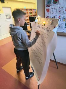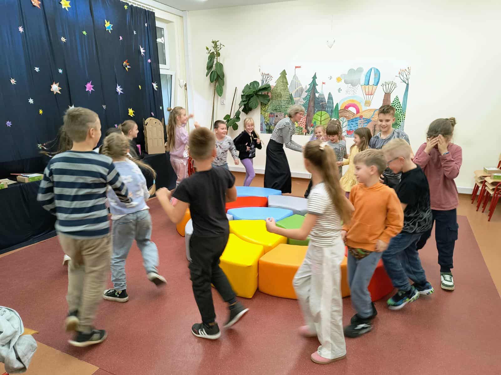 Czy wiecie czym żywią się małe świetliki? Jak zasnąć, kiedy nie czuje się zmęczenia? Co robią nocą jeże? Na jak długo zapadają w sen popielice? Jeśli nie – nic straconego. Na te i wiele więcej znaków zapytania odpowiedzi można poszukać w… książkach! Tak jest! Tuż po Nocy Bibliotek jej uczestnicy – uczniowie klasy 2b mogą, bez cienia wątpliwości podpisać się pod tą książkową tezą. Podczas wieczornego spotkania biblioteka zamieniła się w pokój pełen opowieści z nocą w tle. Drugoklasiści poszukiwali – a jakże – książek! Ukryte w nich zapytania doprowadziły do hasła, które wskazało miejsce, gdzie znajdował się skarb.