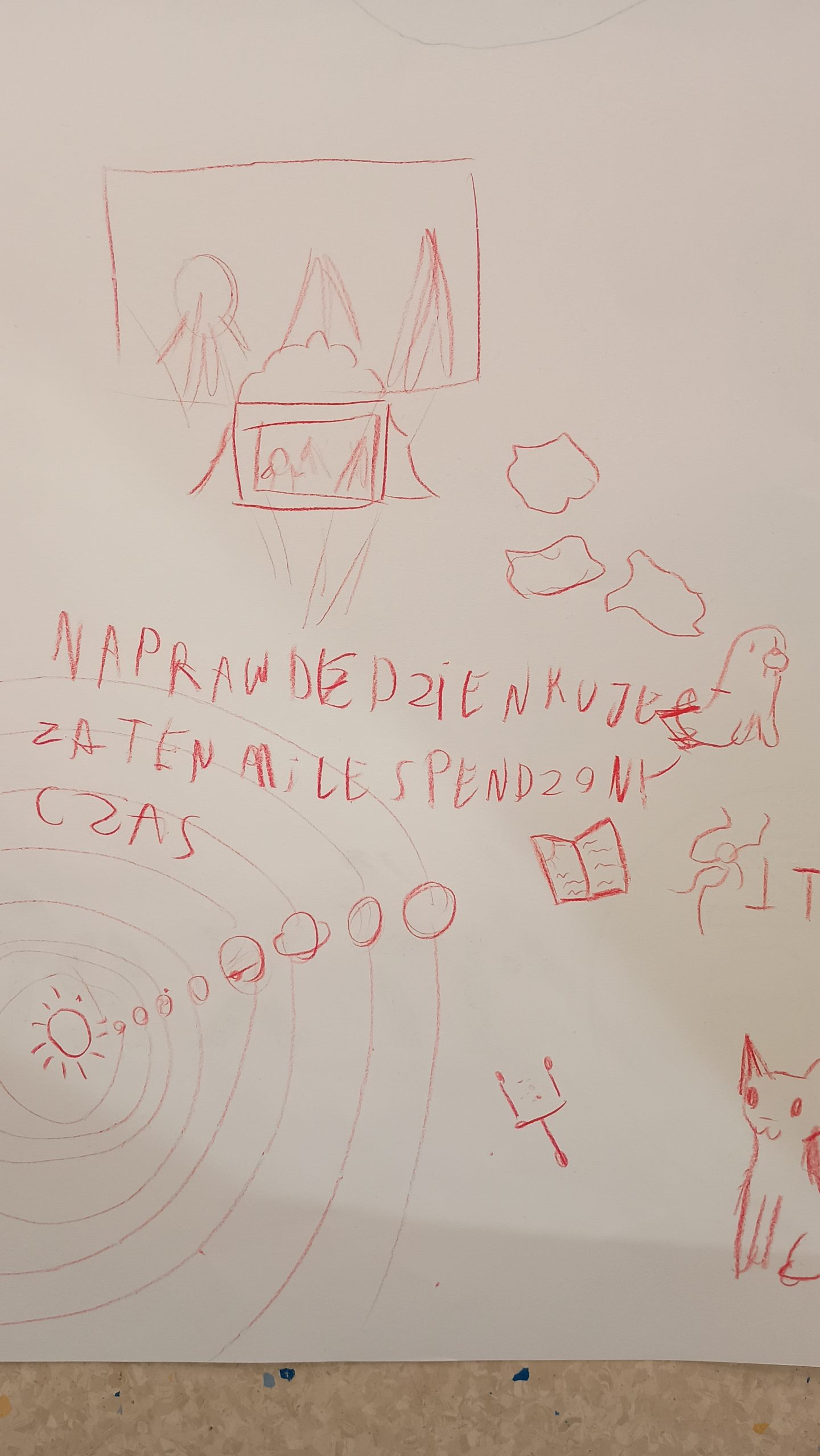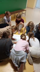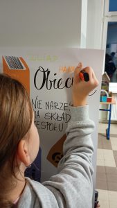 Układ Słoneczny był motywem przewodnim zabawy. Biblioteka stała się pokojem zagadek. Tu uczniowie zdobywali informacje o planetach Układu Słonecznego, a rozwiązanie zagadki kierowało ich do różnych szkolnych zakamarków, gdzie czekały na nich zadania. W trakcie zdobywania punktów przydzielanych przez nauczycieli, podczas wykonywania przeróżnych zadań uczestnicy przygotowali ciasteczka w kształcie planet i gwiazdek. Po podsumowaniu zabawy i ułożeniu puzzli z Układem Słonecznym przyszła kolej na spektakl w postaci magicznego teatrzyku cieni. Uczniowie siedzieli jak zaczarowani, gdy snuła się bajka przeplatana piosenkami w wykonaniu jednej z nauczycielek. Odprężeni znów przystąpili "Do dzieła!". Tym razem przyszła kolej na warsztaty artystyczne. Uczestnicy pokrywali kolorowym lukrem upieczone ciasteczka i tworzyli słodki Układ Słoneczny.