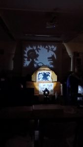 2. Teatrzyk cieni - Kot w butach. Zabawa z maskami do teatrzyku.