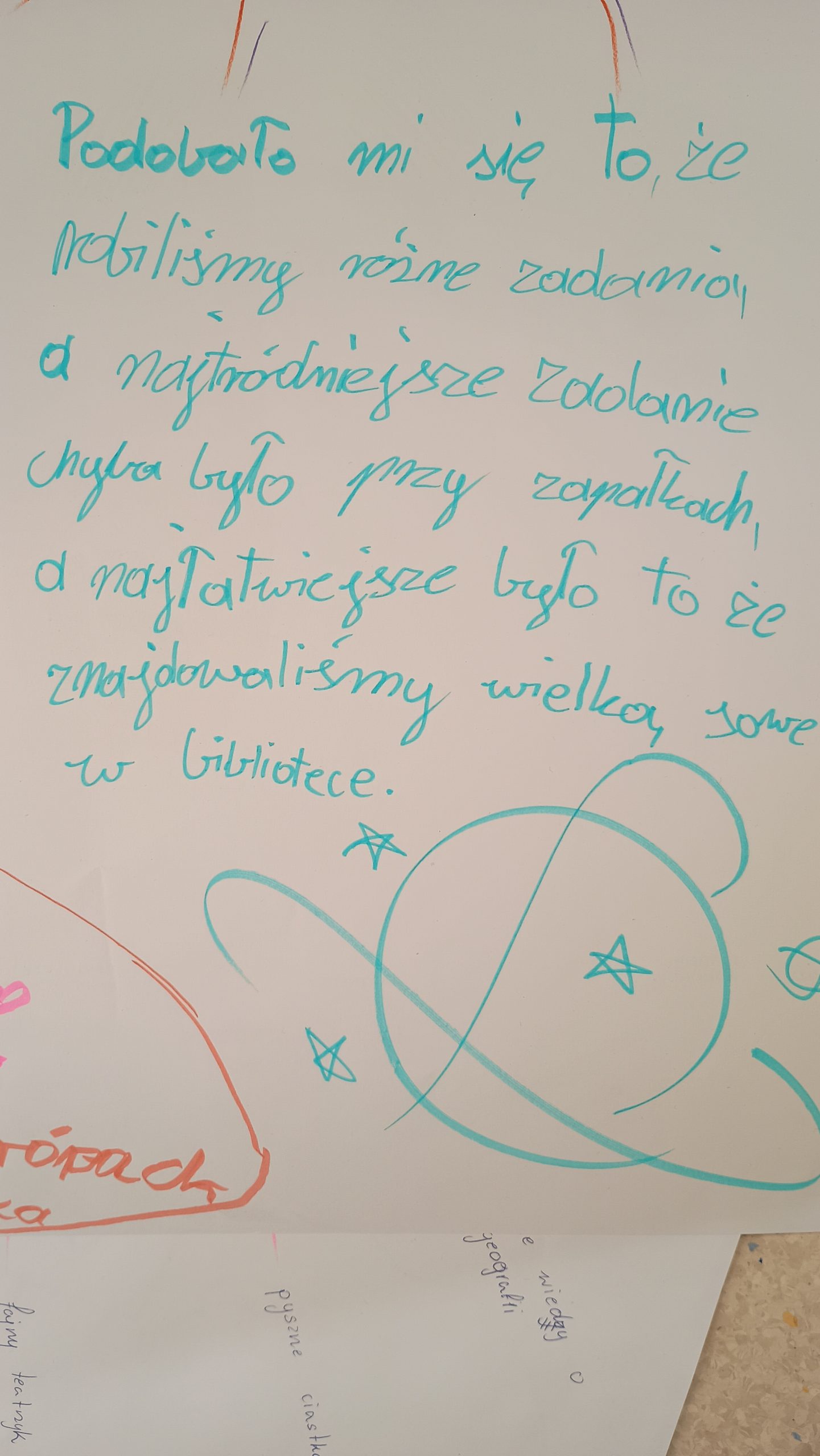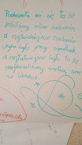 Szkoda, że nie udało się nam wydarzenie plenerowe. Pogoda nie dopisała i nie mogliśmy obejrzeć nocnego nieba w teleskopie. Na szczęście wszystkim dopisał humor i żegnaliśmy się w radosnej atmosferze.