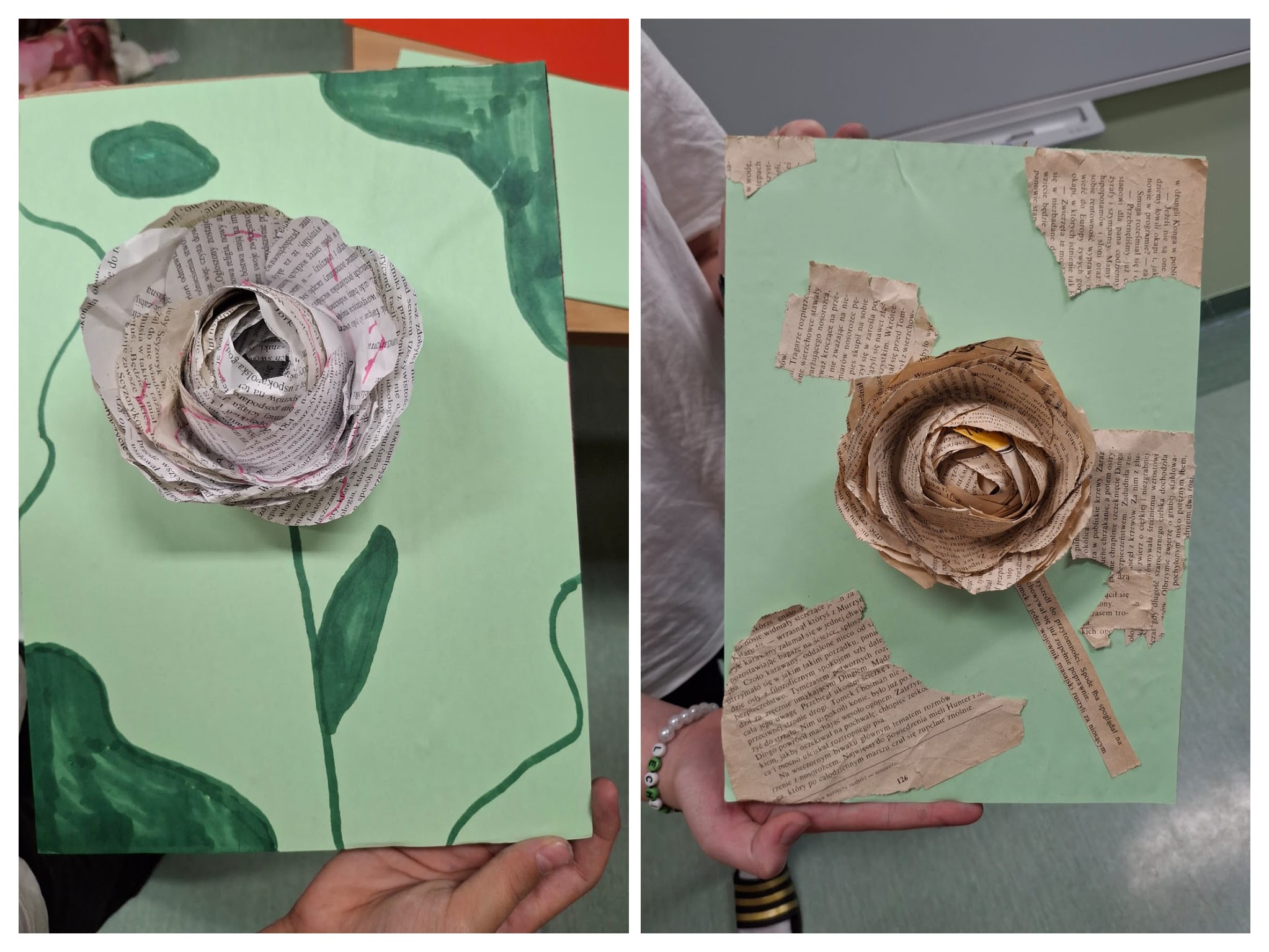 z pożółkłych stron wyrasta PAPIEROWA RÓŻA.