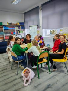 uczniowie wspólnie tworzą opowieść: każdy dopowiada jedno zdanie, trzymając w ręku kłębek włóczki, który przekazuje dalej – powstaje „nić historii”.