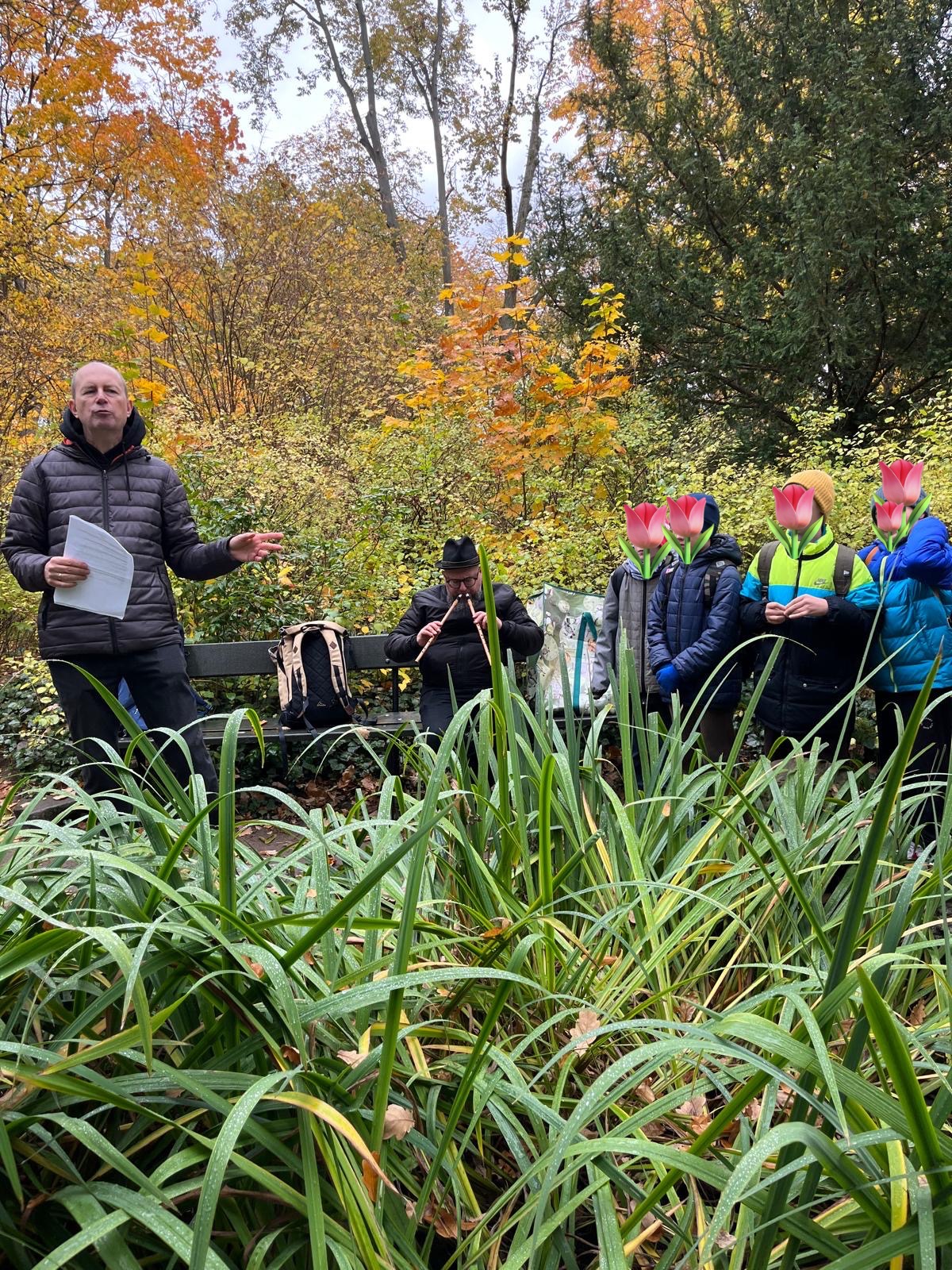 5. 17 października nasza biblioteka zorganizowała wycieczkę po Łazienkach pt. "Lira i Lira i Aulos - mity greckie". Była to prezentacja mitów greckich wpisana w plenerową przestrzeń i historię Łazienek Królewskich. Opowieściom towarzyszyła muzyka na lirze i aulosie oraz opowieści o ich powstaniu i znaczeniu w kulturze starożytnej Grecji. W czasie spaceru uczniowie dowiedzieli się, co łączyło króla Stanisława Augusta z Apollinem i Heraklesem, wysłuchali interpretacji mitów, m.in. o narodzinach Hermesa i powstaniu liry, o Orfeuszu, Dedalu i Ikarze, pojedynku Apollo z Marsjaszem, a także fragmentu „Iliady” w języku oryginału z akompaniamentemliry. Rozwiązywali zagadki z Antologii Palatyńskiej i wspólnie opowiadali o 12 pracach Herkulesa. Grupa zwiedziła także Pałac na Wodzie w poszukiwaniu mitycznych wątków (projekt realizowany przez opowiadaczy i muzyków ze stowarzyszenia Studnia opowieści; finansowany przez miasto stołeczne Warszawa). W wycieczce uczestniczyły w dwie klasy.