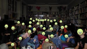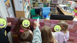 Podczas tegorocznej Nocy Bibliotek zorganizowaliśmy grę terenową po szkole pt. Na tropie skarbu oraz obejrzeliśmy film.
