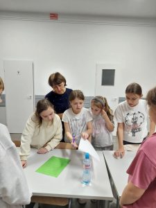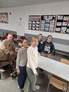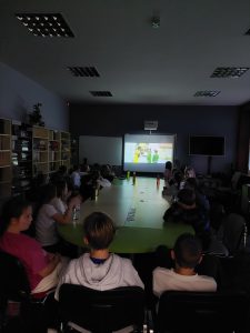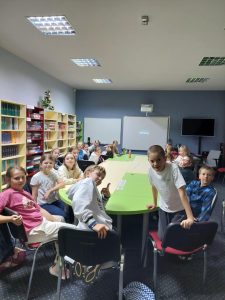 Kolejnym punktem wieczoru była projekcja filmu „Rabuś z pociągu” w sali multimedialnej. Po seansie odbyła się krótka dyskusja, w której uczniowie chętnie dzielili się swoimi spostrzeżeniami – poruszali temat odwagi, odpowiedzialności i współpracy. Film okazał się doskonałym punktem wyjścia do rozmów o wartościach i o tym, jak różne mogą być motywacje bohaterów literackich i filmowych.