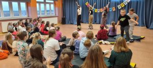 Po tej emocjonującej części wieczoru odbyły się zajęcia z nietypową książką, czyli teatrzykiem kamishibai. Uczniowie wysłuchali wartościowej bajki o Brzydkim kaczątku, która uczy akceptacji inności, wiary w siebie, cierpliwości oraz nieosądzania innych po pozorach. Uczy również tego, iż każdy jest wyjątkowy i że warto być dobrym dla innych, nawet jeśli na początku wydaje się dziwny lub gorszy. Specjalnie na tegoroczną noc Joanna Mueller napisała wiersz pt. „Jest taki portal”, który zachęcał do korzystania z biblioteki i czytania książek. Oto jego fragment: „Dzięki książce fantazja jeszcze nie zginęła, póki żyjesz, czytaj – no, bierz się do dzieła!”. Po wysłuchaniu wiersza odbyły się warsztaty plastyczne, na których każdy ozdobił swój spersonalizowany breloczek oraz barwnie pomalował mandalę z wizerunkiem sowy.