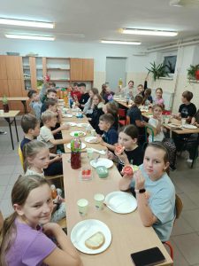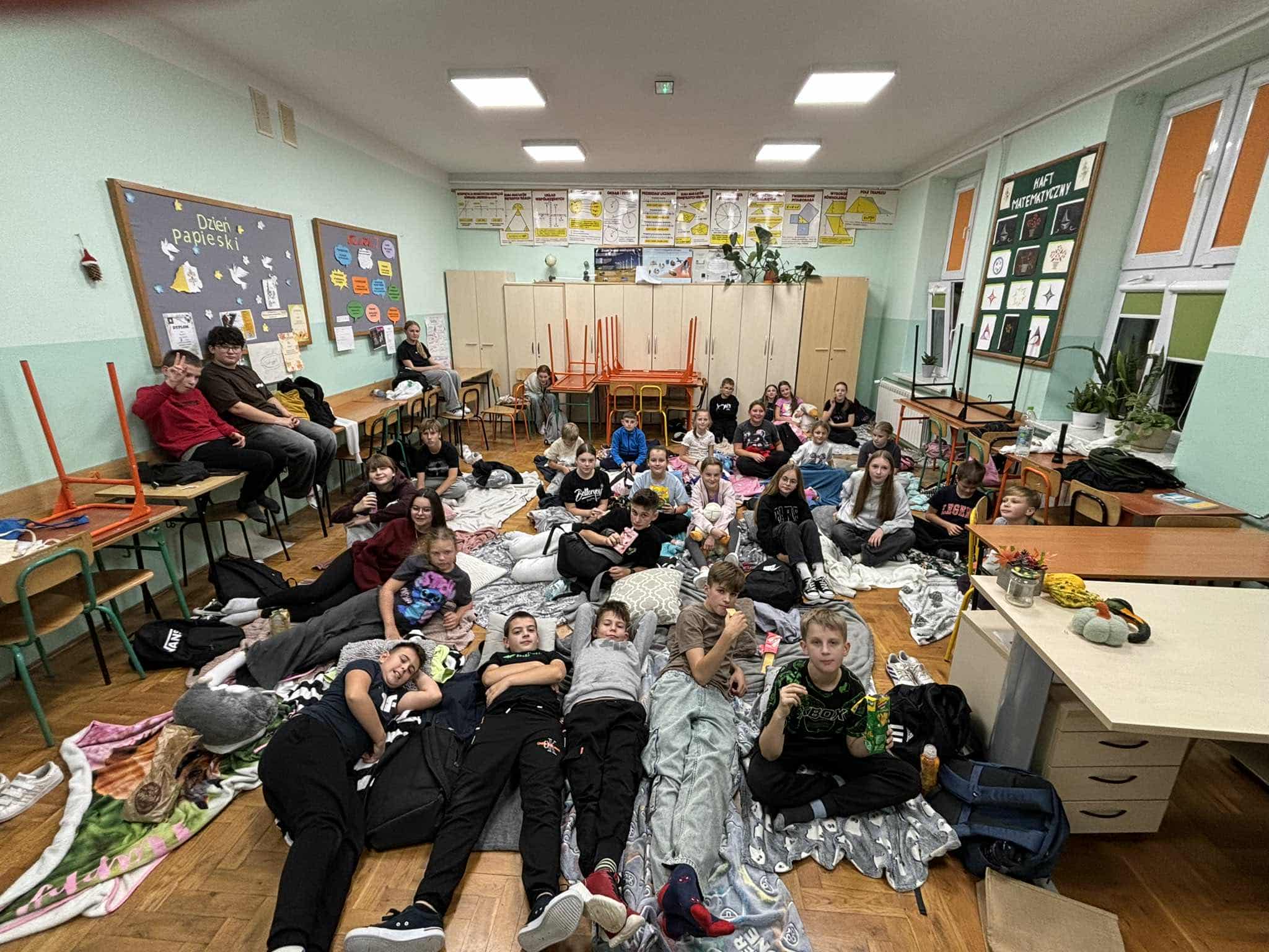 17 października dołączyliśmy do Nocy Bibliotek - ogólnopolskiej akcji promującej czytelnictwo.  Uczniowie klas 4-6 wzięli udział w grze terenowej, podczas której rozwiązywali zagadki literackie i odkrywali tajemnice ukryte w szkolnych zakamarkach oraz uczestniczyli w warsztatach artystycznych🎨✂️ inspirowanych literaturą. Po  emocjonujących zmaganiach  wspólnie przygotowali pyszną kolację 🥪🥗