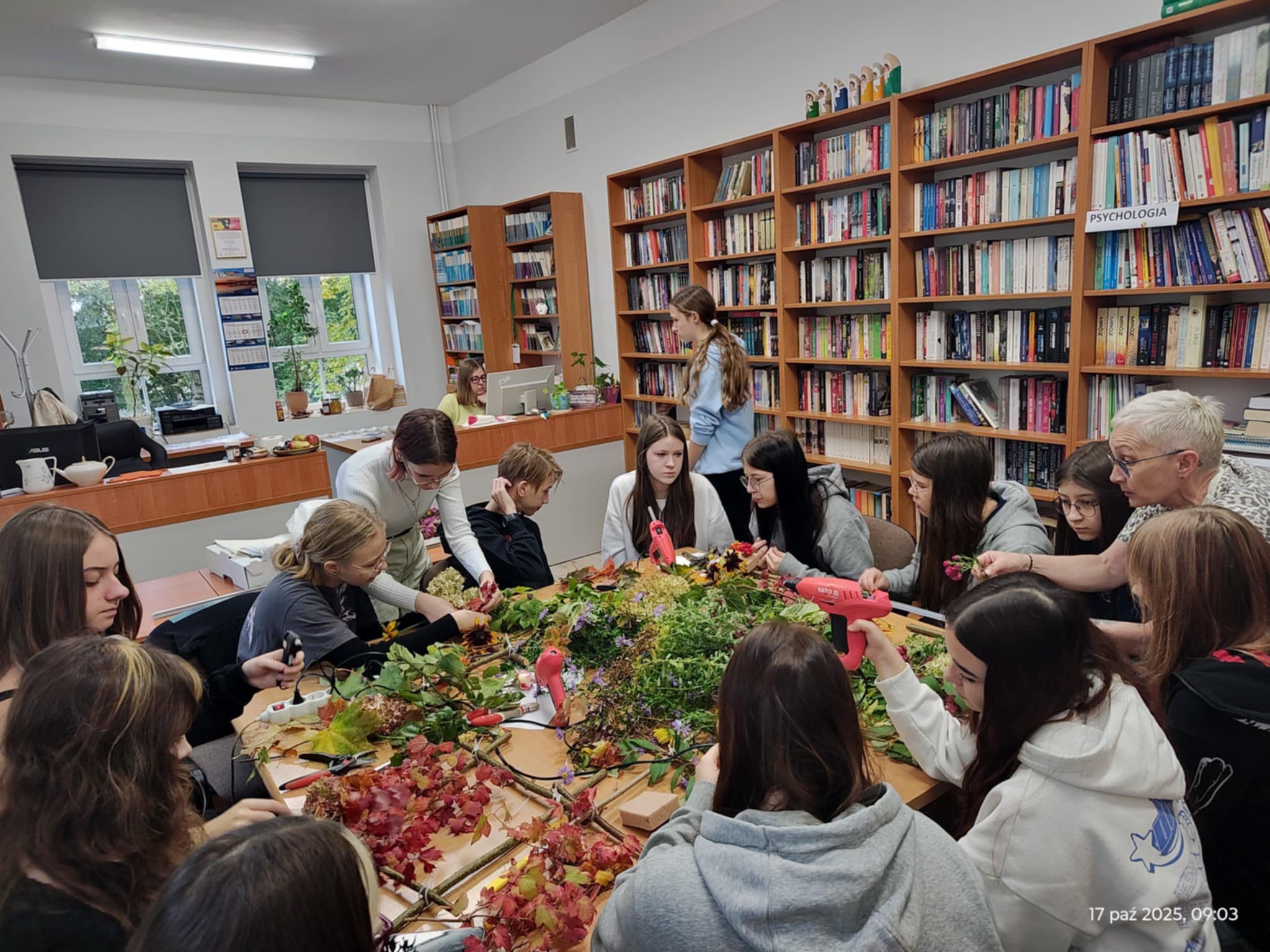 z młodzieżą, ale także inne koleżanki ze Śniadeckiego, nauczycielki: języka polskiego, architektury krajobrazu oraz biznesu i zarządzania. Postanowiłyśmy wspólnie stworzyć „nasze dzieło”, a przy tym zaangażować większą grupę młodzieży. Zajęcia z języka polskiego – Czytanie nie boli odbyły się w bibliotece szkolnej. Głośne czytanie wybranych fragmentów literatury to promocja czytelnictwa i kształtowanie kluczowych korzyści rozwojowych oraz budowanie więzi społecznych, przełamywanie stresu