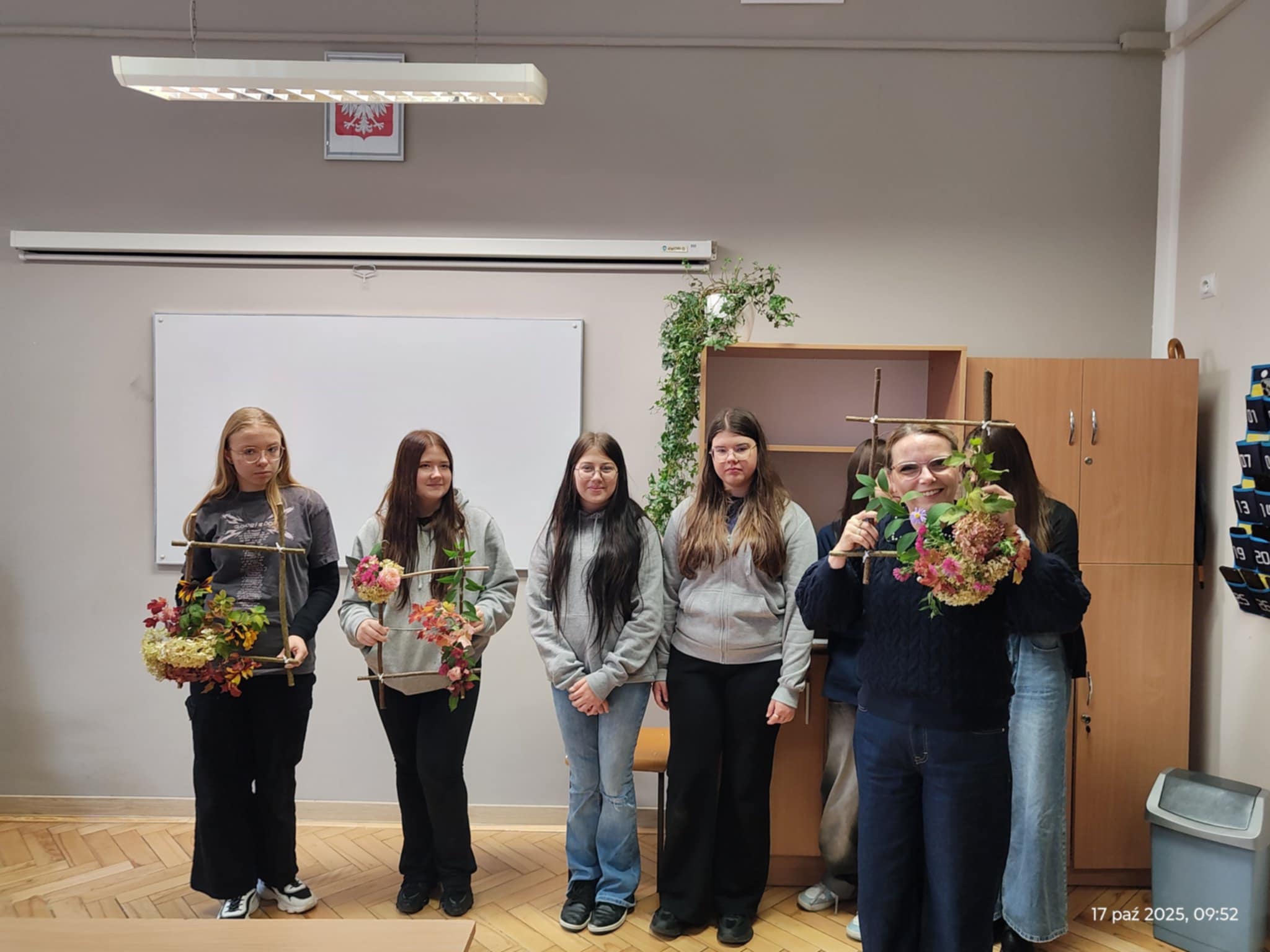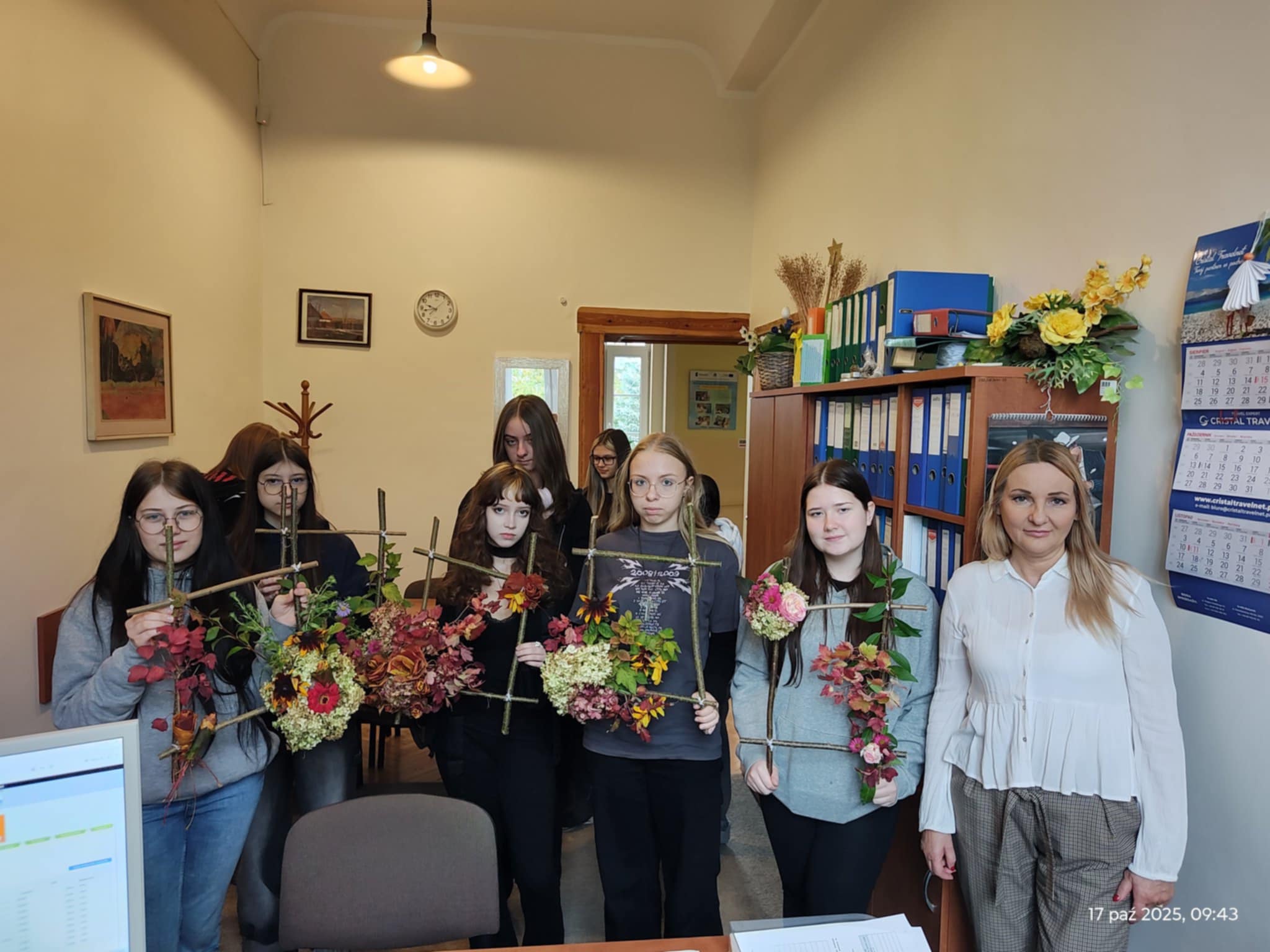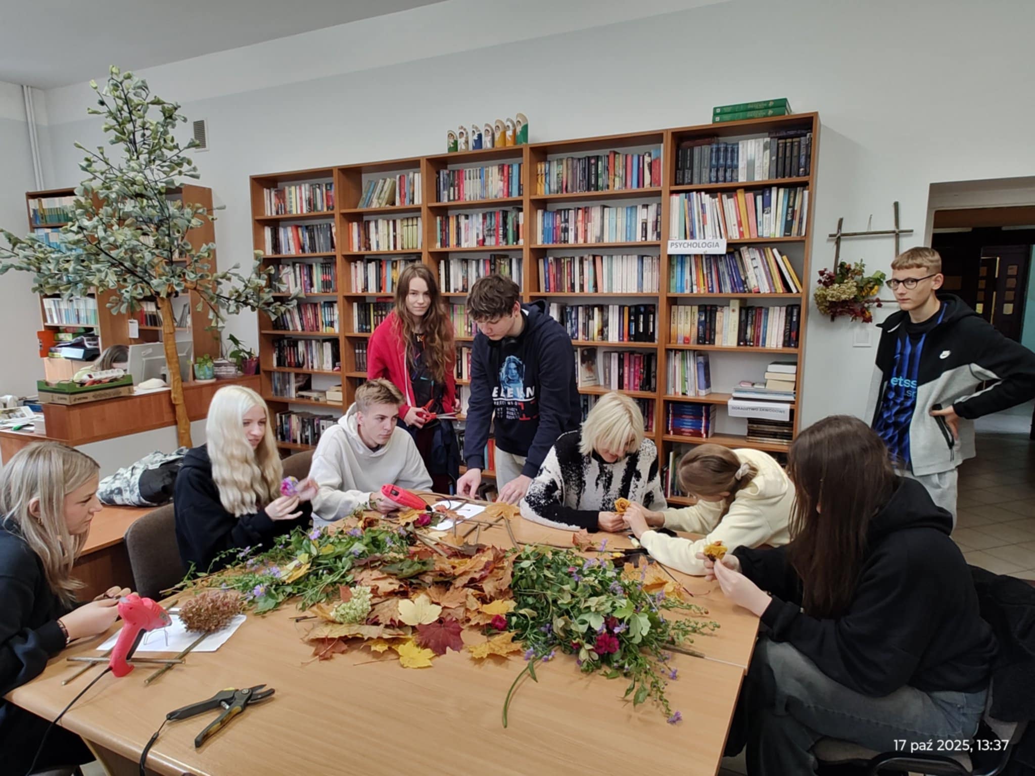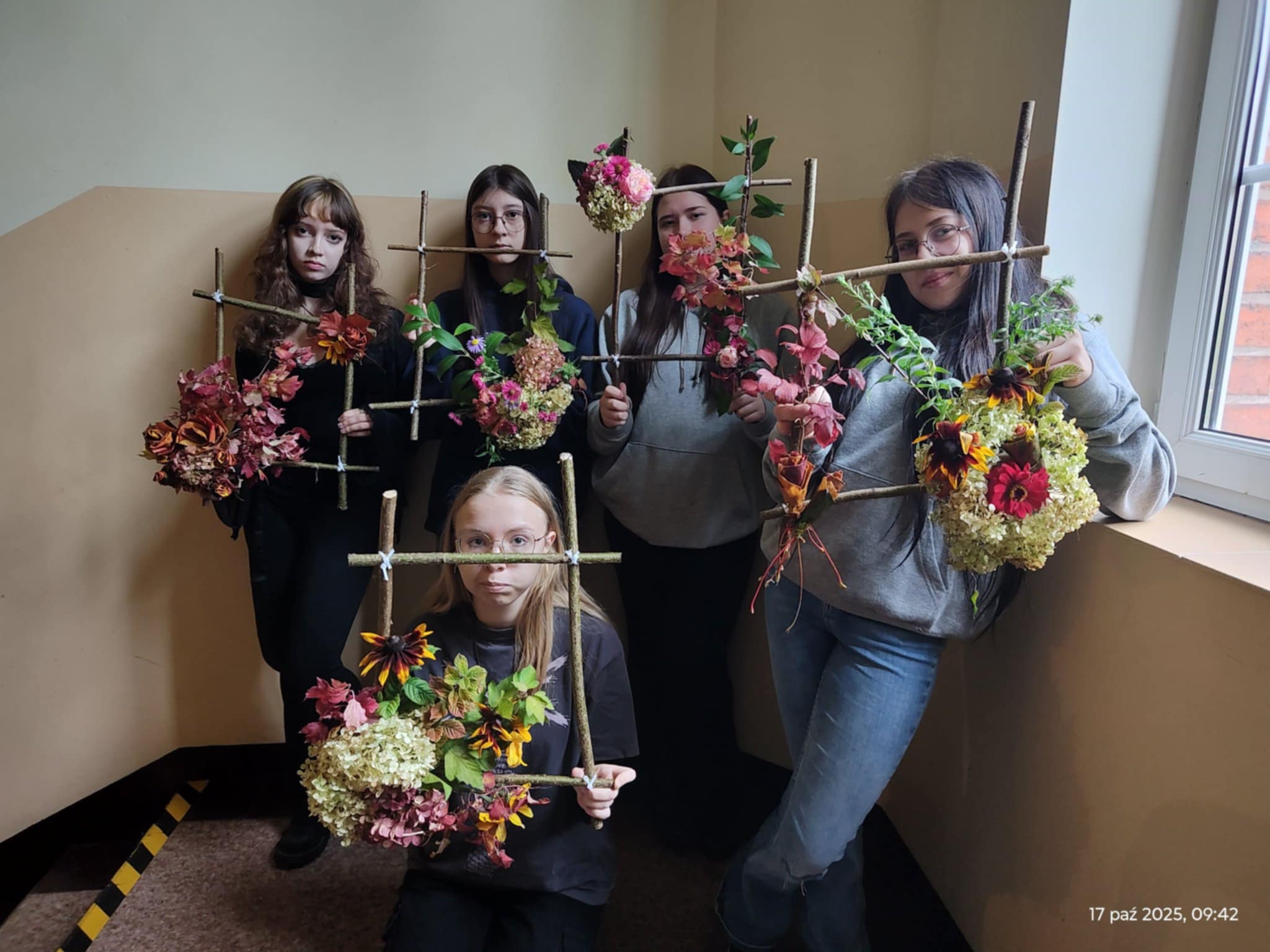w niezmiennej formie zostały utrwalone na zawsze. Młodzież poznała kolejne techniki tworzenia dekoracji. Wykonano róże z kolorowych liści klonu. Z patyków, gałązek