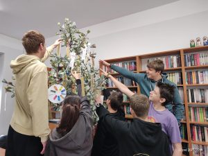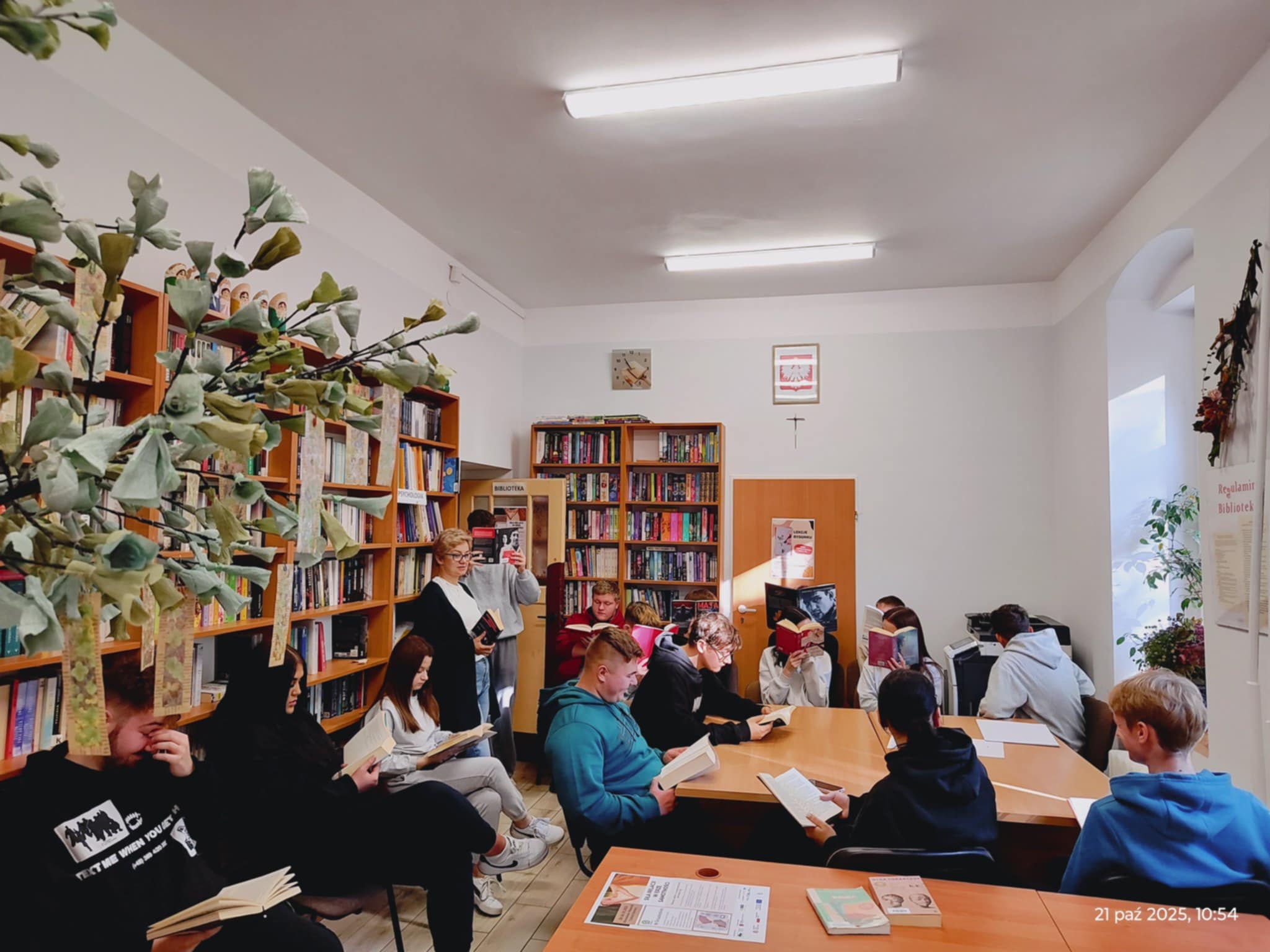 Było to wspólne, bezpieczne i wartościowe spędzenie czasu, kształtujące nawyki czytania w dorosłym życiu oraz budowanie pozytywnych relacji w erze samotności. Dziękujemy CEO, szczególnie Pani Katarzynie, za coroczne wsparcie, duchową opiekę, pomysły i materiały! Dziękujemy Naszej Dyrekcji, wszystkim uczniom i nauczycielom za kreatywność, zaangażowanie i staranność wykonania wszystkich dzieł. Drzewo i zawieszone na nim zakładki będą ozdabiać biblioteką prze kolejne tygodnie. Do zobaczenia już za rok!