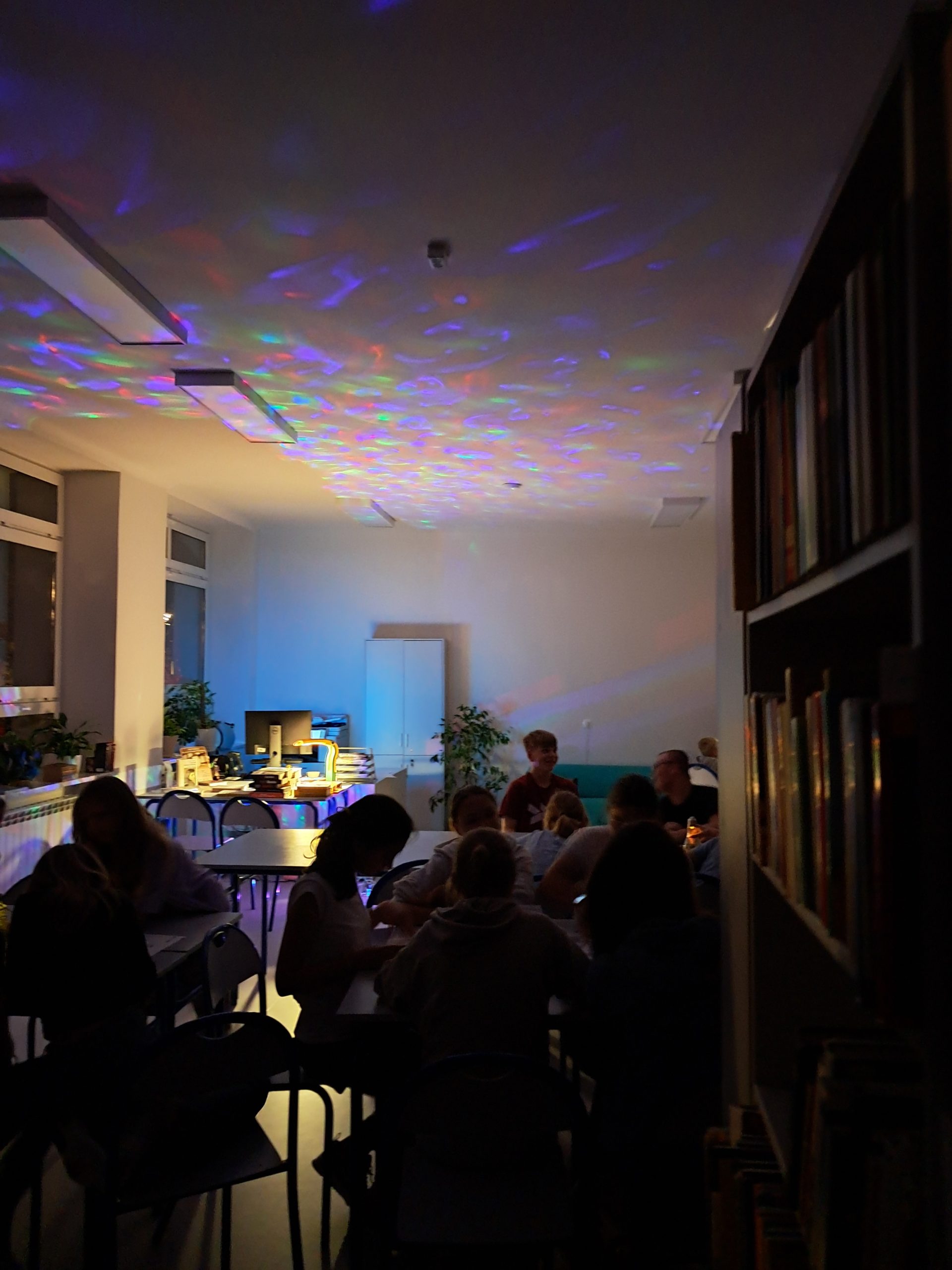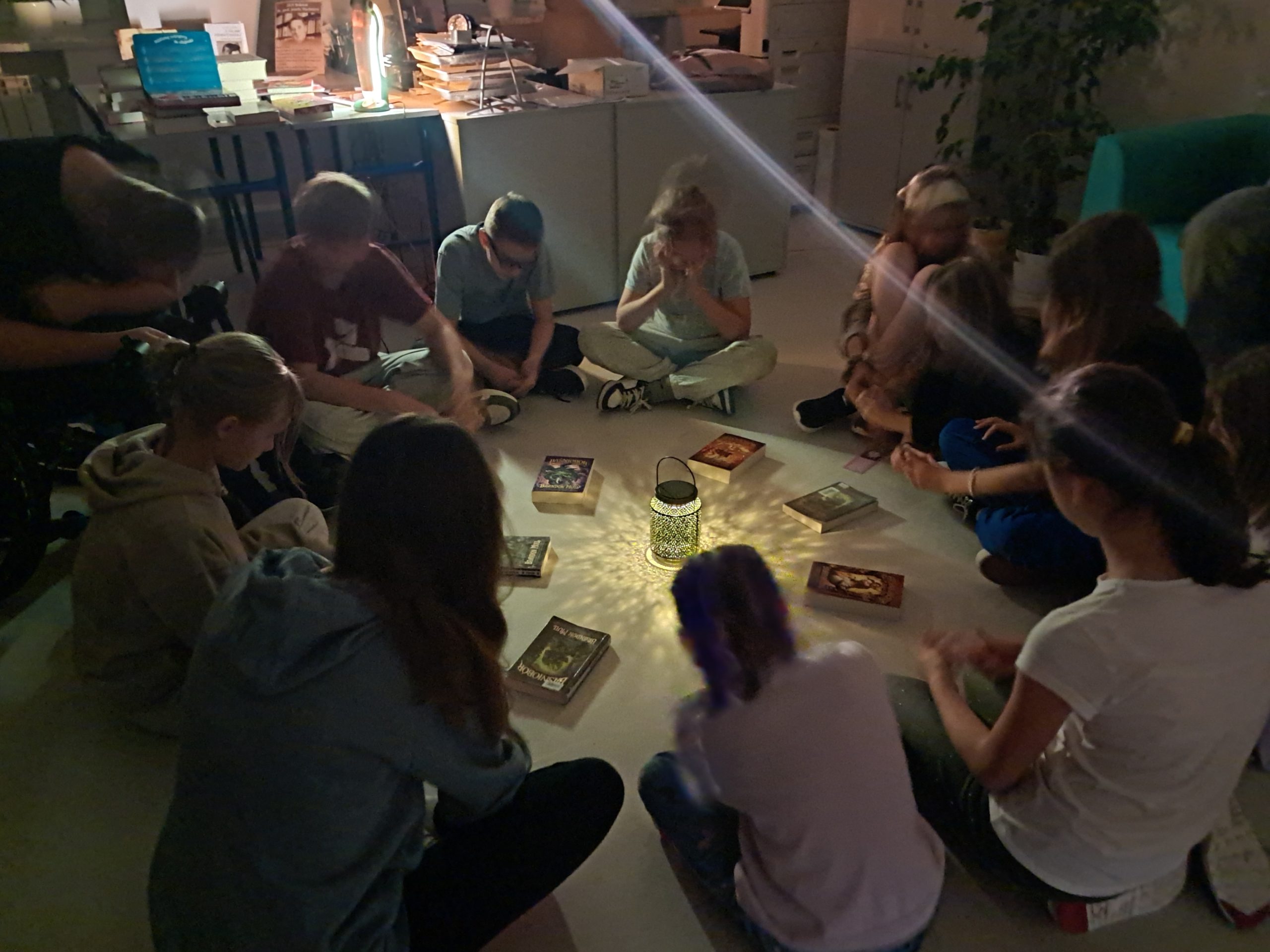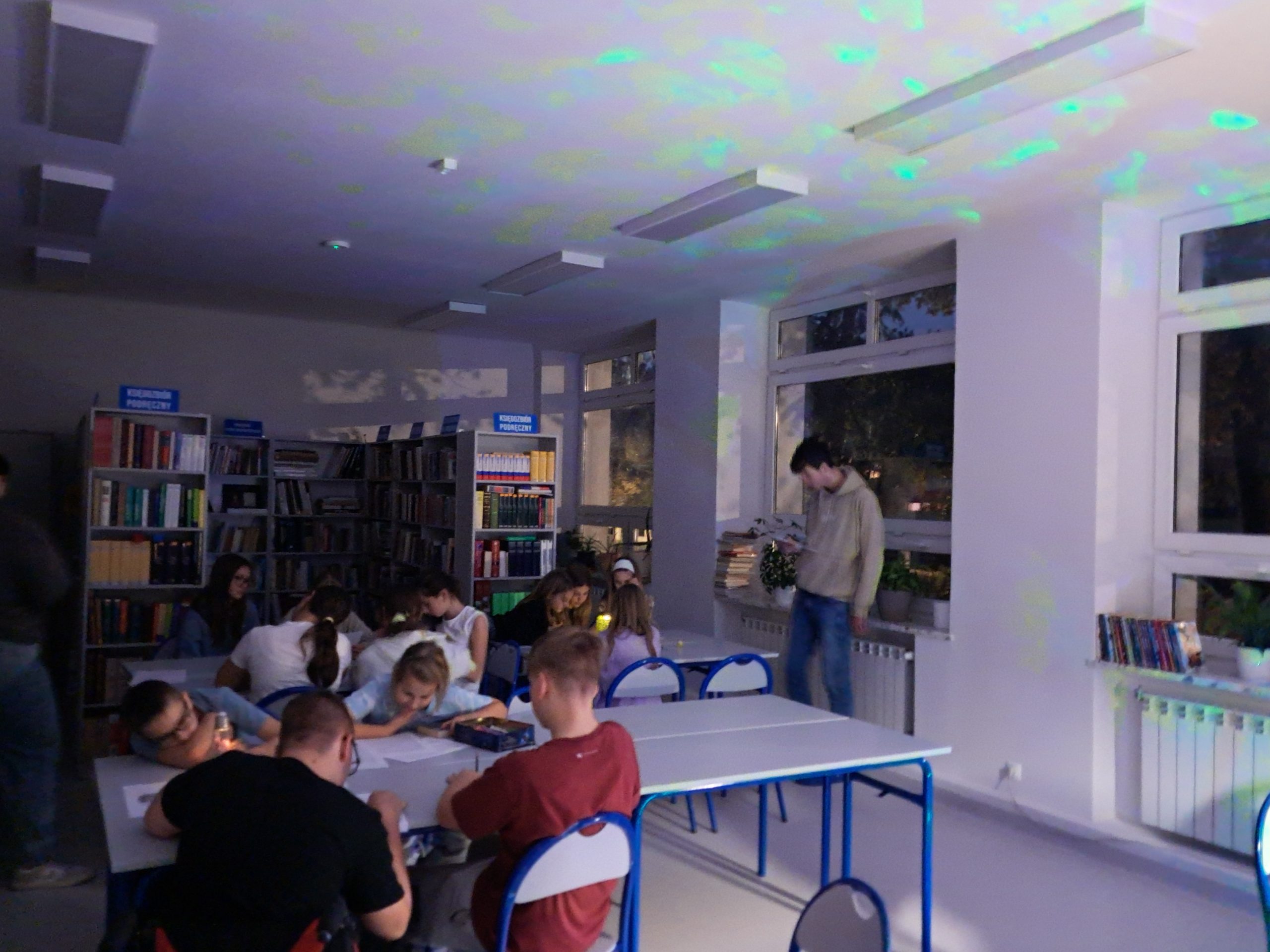 Obie części Nocy Bibliotek cieszyły się ogromnym zainteresowaniem uczniów. Przez całe wydarzenie panowała bardzo fajna atmosfera — pełna zaciekawienia, zainteresowania i pozytywnej energii. Uczniowie aktywnie współpracowali, wykazując się zarówno umiejętnościami analitycznymi, jak i znajomością literatury.