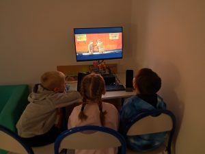 Miłą atmosferę dopełniał poczęstunek w postaci popcornu. Uczestnicy wykazali się dużym zaangażowaniem, chętnie i sprawnie rozwiązując postawione przed nimi zadania.
