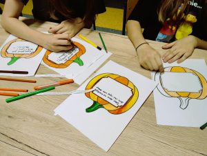 Tegoroczne hasło akcji to: „Do dzieła!” – pełne energii i wyzwań, tak jak i my:) Jako że nasza szkoła bierze udział w kampanii społecznej „Słowa mają moc”, działaliśmy także w sferze dobrosłownej. „Zadyniowaliśmy” rozgrzewającymi serca słowami pisarzy, filozofów, czy bohaterów naszych ulubionych książek całą szkołę, zgodnie z tematem przewodnim „Dyniowe love”. W końcu skąd płyną dobre słowa, jak nie z biblioteki:)