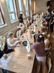 W programie nie zabrakło przedstawienia, czytania bajek, zagadek, zabaw ruchowych i warsztatów plastycznych, podczas których każdy tworzył swoje własne dzieło.