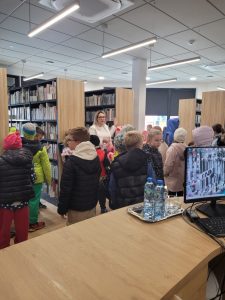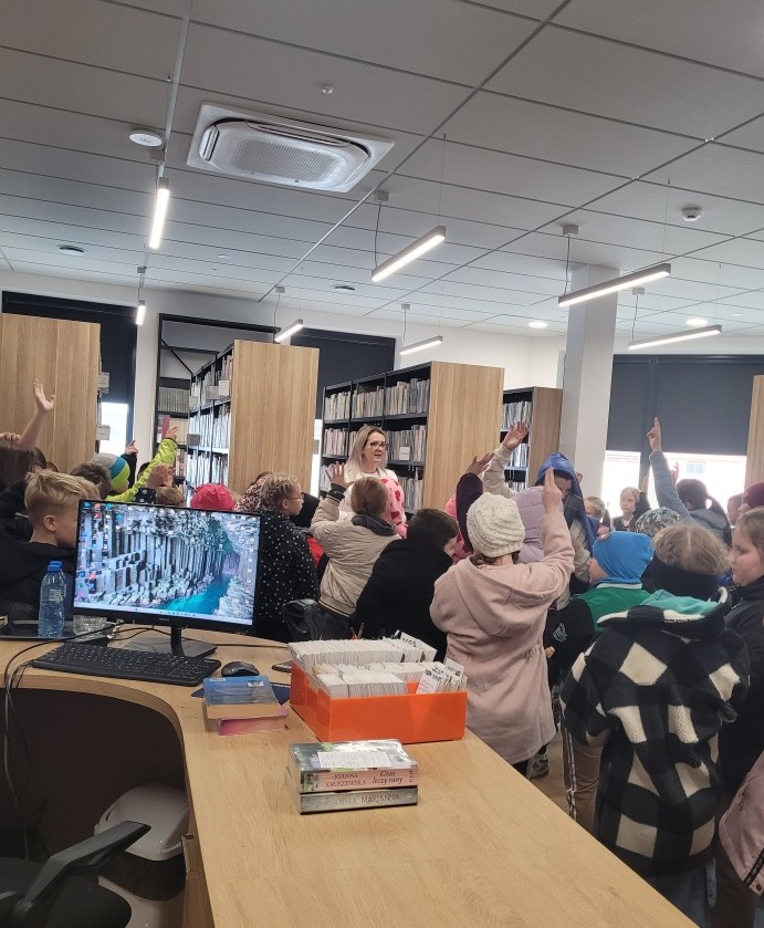 Na najmłodszych uczniów szkół podstawowych czekał film familijny pt. „Biuro Detektywistyczne Lassego i Mai. Rabuś z pociągu", nadesłany do nas przez organizatorów Nocy Bibliotek. Każda projekcja filmowa poprzedzona była krótką lekcją biblioteczną. Nie lada gratką, była również wizyta naszych najmłodszych gości w pomieszczeniu biblioteki oraz zapoznanie się z jej okazałym księgozbiorem.