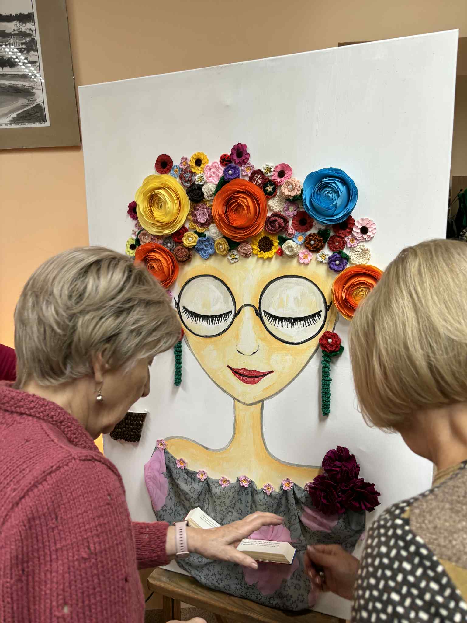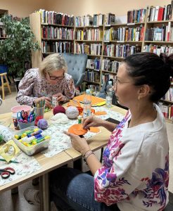 To był naprawdę wyjątkowy wieczór – pełen dobrej energii, twórczych rozmów, uśmiechów i inspiracji. Tegoroczne hasło „Do dzieła!” potraktowaliśmy dosłownie – i wspólnie zrobiliśmy coś pięknego. Podczas warsztatów z makramy powstały wyjątkowe jesienne liście – delikatne, pełne barw i fantazji. Każda praca była inna, niepowtarzalna, a przede wszystkim przygotowana z sercem. Później biblioteka zamieniła się w przestrzeń twórczego spotkania – miejsce, gdzie razem stworzyliśmy prawdziwe dzieło. Można było szydełkować, dziergać, wycinać, kleić, wymieniać się pomysłami, porozmawiać i po prostu być razem, by potem móc podziwiać wspólnie wykonany różnymi technikami obraz 3D. To właśnie dzięki takim akcjom biblioteka żyje nie tylko książkami, ale też ludźmi i ich pasją!