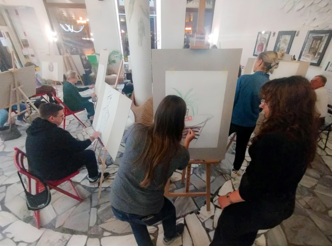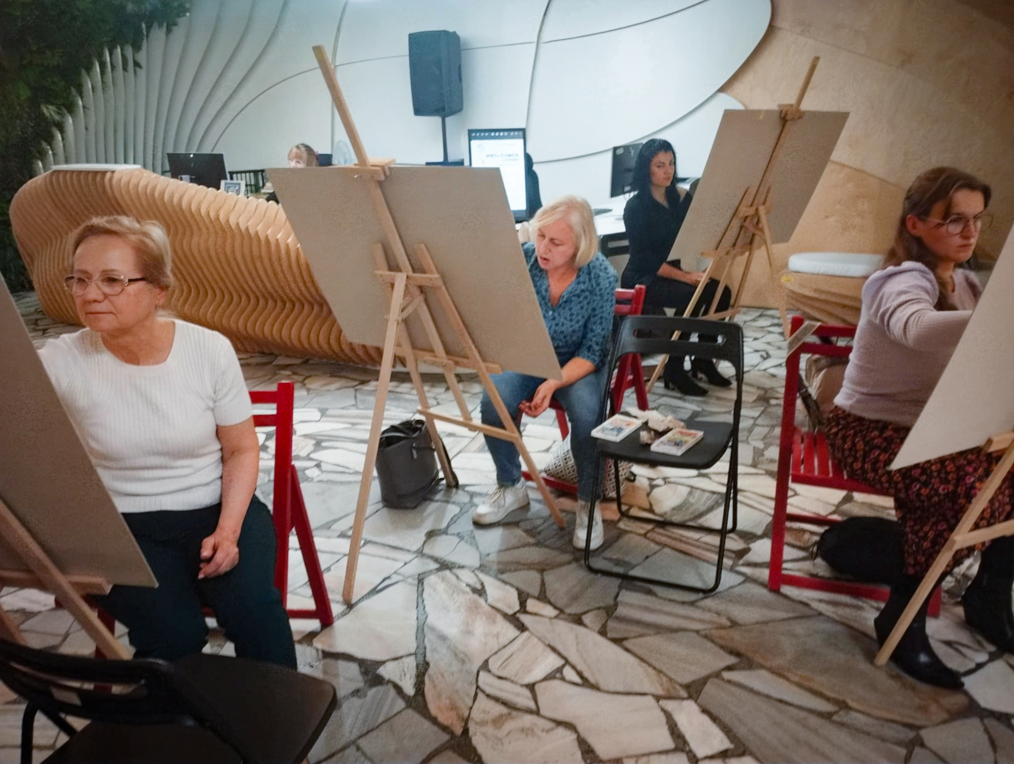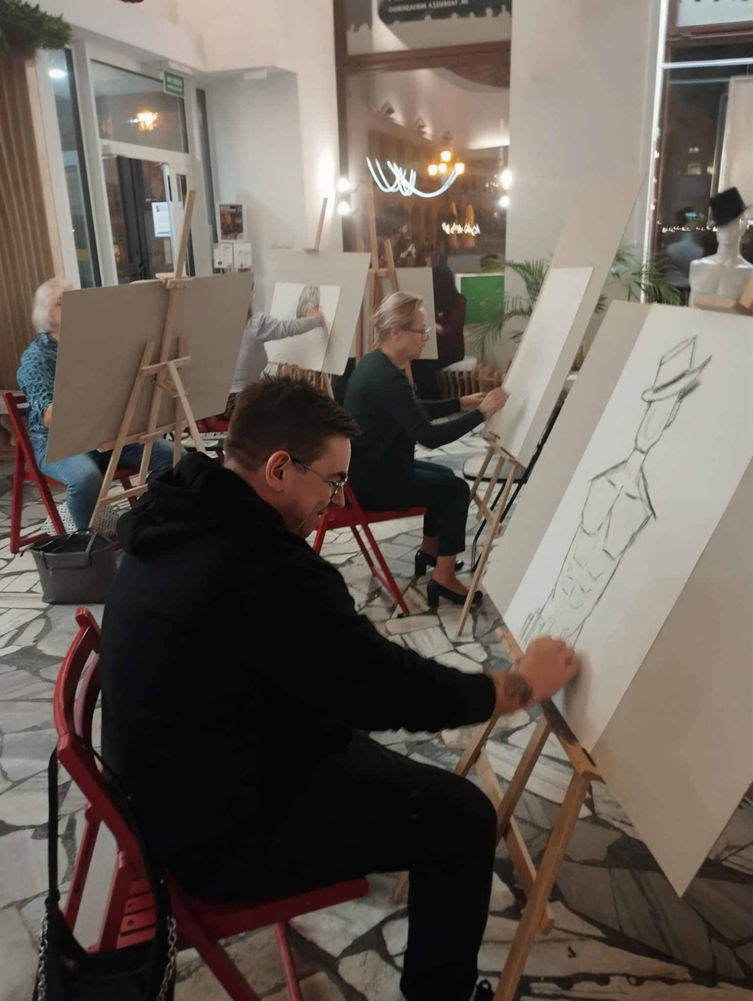 🎶 Późny wieczór należał do dorosłych uczestników – warsztaty „Symfoniczny blackout” połączyły słowo i dźwięk w eksperymentalnej formie, a w Galerii Pod Plafonem Marcelina Groń poprowadziła ekspresyjne warsztaty rysunkowe „Do dzieła! Do sztalug!”, które pozwoliły uczestnikom wyrazić emocje poprzez sztukę i nabyć nowe umiejętności pod okiem artystki-dydaktyka.