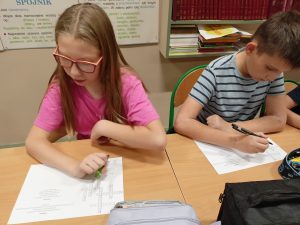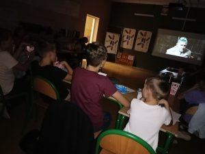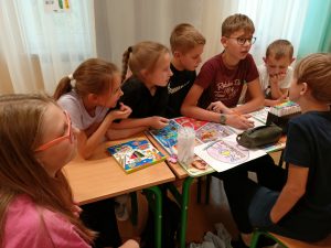 Powitanie,odczytanie wiersza, kolorowanie loga Nocy Bibliotek, odczytywanie kryptogramów,historyjka abc, krzyżówka,zabawy ruchowe, słodki poczęstunek,gry planszowe,seans filmowy pt. "Biuro Detektywistyczne Lassego i Mai. Rabuś z pociągu".