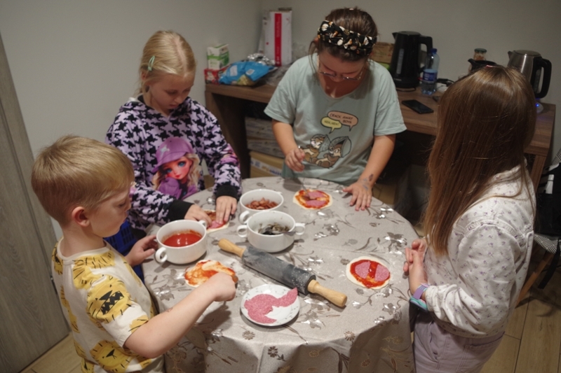 Chwilę wcześniej chętni przygotowywali swoje własne pizzerynki. Zapewne stąd wzięła się siła i odwaga, aby wystąpić w pokazie mody. :D
