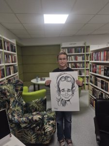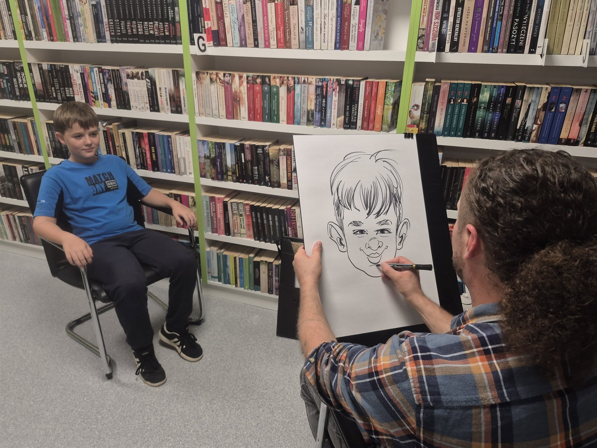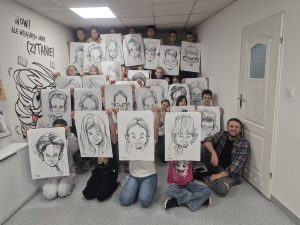 Czym jest karykatura i jak szybko można ją wykonać? Odpowiedzi na te pytania udzielił Szymon Teluk, malarz, rysownik, ilustrator. Oczywiście każdy uczestnik wrócił do domu z pamiątkową karykaturą.
