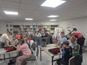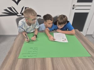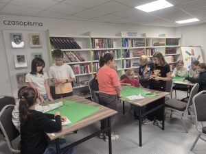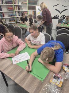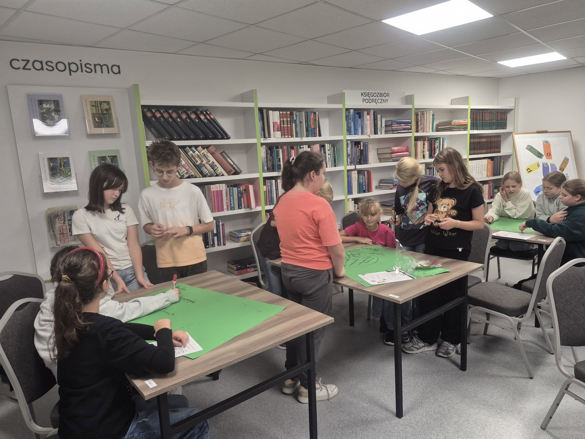 Po kolacji uczniowie zawitali do Gminnej Biblioteki Publicznej w Dobrzycy. Tutaj czekały na nich kolejne zadania i atrakcje.