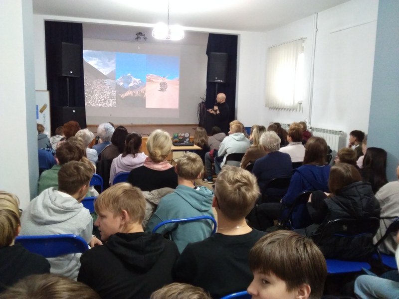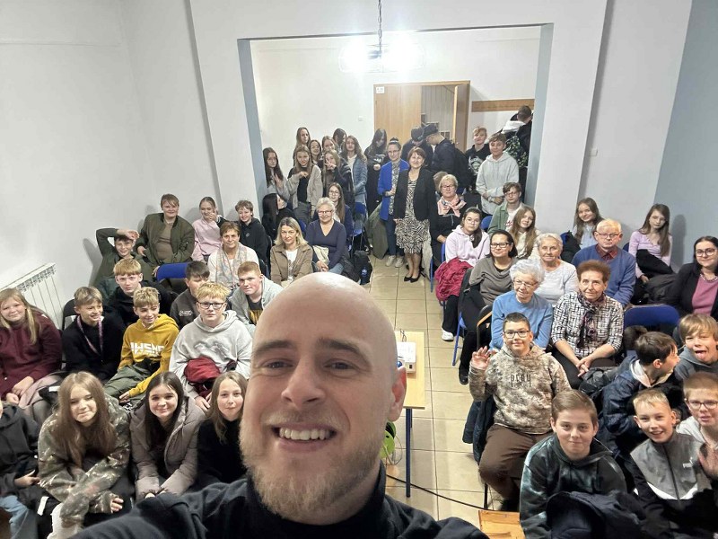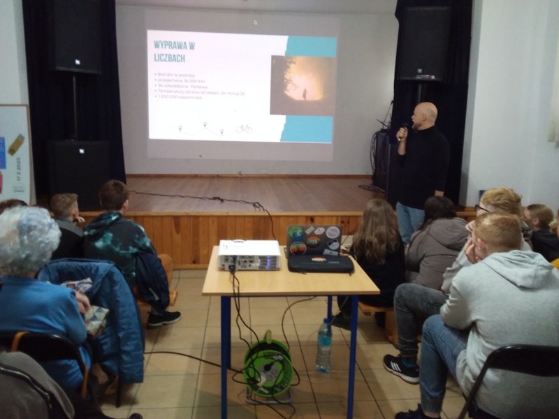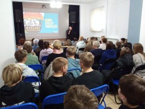 Tegoroczna edycja Nocy Bibliotek przebiegała pod hasłem „Do dzieła!” a jej celem była promocja czytelnictwa oraz biblioteki jako lokalnego centrum kultury i edukacji. Z tej okazji Gminna Biblioteka Publiczna w Gidlach gościła w dniu 17 października 2025 r. podróżnika, mieszkańca Radomska – Łukasza Furmańczyka, który podczas dwuletniej podróży rowerem zwiedził 34 państwa na trzech kontynentach, przemierzając samotnie stepy, pustynie i wysokie góry, łącznie 36 tysięcy kilometrów. Podczas niezwykle inspirującego spotkania, którego uczestnikami była młodzież z klas VI i VII z Publicznej Szkoły Podstawowej w Gidlach oraz przedstawiciele z Klubu Senior + z Pławna, nasz gość opowiedział o swojej niezwykłej przygodzie życia, na prezentacji przybliżył miejsca, które odwiedził oraz ludzi, których spotkał, podzielił się ciekawymi historiami z podróży. Nie zabrakło również panelu dyskusyjnego i wspólnych zdjęć, uczestnicy spotkania zadawali pytania dotyczące organizacji takiej wyprawy rowerowej oraz trudności i wyzwań podróżniczych. Naszemu gościowi życzymy wielu kolejnych udanych wypraw i rozwijania swojej niezwykłej pasji.