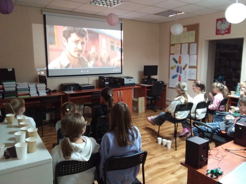 Drugim wydarzeniem w naszej bibliotece był pokaz filmowy. Nasza instytucja zamieniła się w biuro detektywistyczne, za sprawą filmu na podstawie bestsellerowej serii książek dla dzieci „Biuro Detektywistyczne Lassego i Mai. Rabuś z pociągu”. Film został udostępniony dzięki partnerowi Nocy Bibliotek - Festiwalowi Filmowemu Młode Horyzonty. 17 października 2025 r. odbył się seans filmowy, który zgromadził grono młodych miłośników zagadek. Projekcja filmu była również okazją do wspólnego spędzenia czasu wolnego i integracji uczestników.