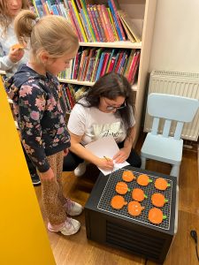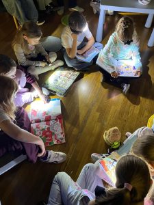 W programie znalazły się warsztaty pierniczkowe które prowadziła Pani Anna Blada- zdobywczyni Grand Prix 2024, Grand Prix 2025 w Mistrzostwach Tortów i Dekoracji Cukierniczych, literackie zabawy, wspólne czytanie przy latarce oraz filmowy seans „Biuro Detektywistyczne Lassego i Mai. Rabuś z pociągu”, które stworzyły wyjątkową atmosferę spotkania z książką w roli głównej.