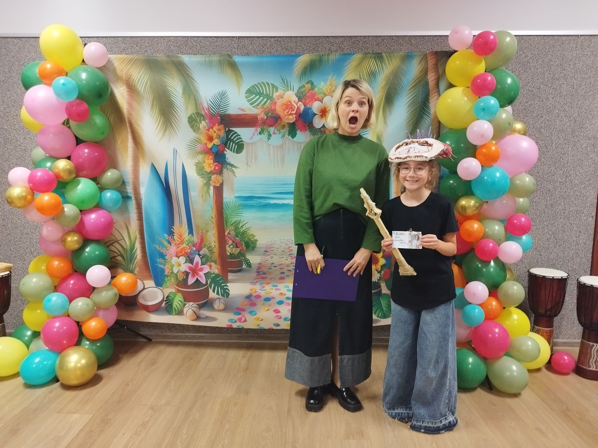 - W bibliotece czekała na naszych odkrywców Weronika Bochat-Piotrowska - aktorka teatralna i dubbingowa, która jest odtwórczynią roli Vaiany w polskiej wersji językowej filmu "Vaiana. Skarb oceanu". Pani Weronika zaśpiewała na żywo piosenkę "Pół kroku stąd". Następnie dzieci i rodzice mogli zadać naszej gościni pytania. A było ich całe mnóstwo. Nas najbardziej urzekło proste pytanie: "Czy jest Pani szczęśliwa?". Był też czas na autografy i wspólne zdjęcia. Ciekawostką było to, że w filmie Vaiana 2, w jedną z ról wciela się też córka Pani Weroniki. Pani Weronika z ogromną cierpliwością odpowiadała na wszystkie pytania, odkrywając tajniki dubbingu i tego, jak przebiega współpraca z Disney.