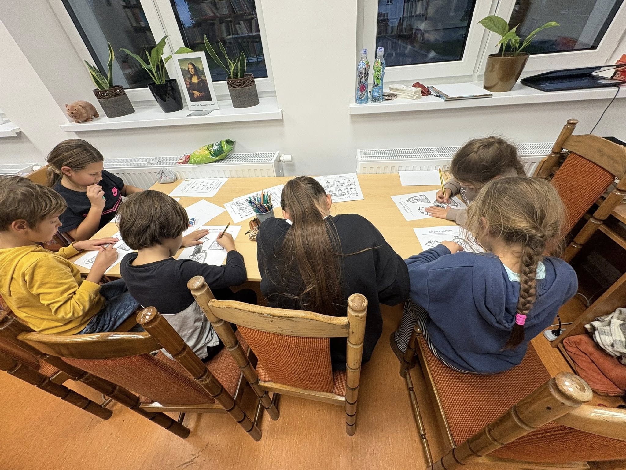 Następnie wspólnie przeczytaliśmy książkę „Biuro Detektywistyczne Lassego i Mai. Tajemnica zwierząt”, po czym dzieci mogły sprawdzić swoje zdolności dedukcyjne, rozwiązując zagadki inspirowane innymi śledztwami małych detektywów.