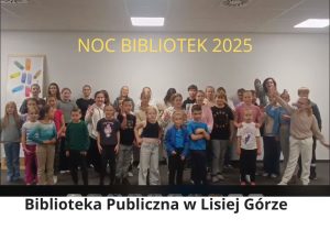 "Do dzieła"- Noc Bibliotek w Bibliotece Publicznej w Lisiej Górze miała miejsce dnia 17 października. Nasza biblioteka zgromadziła licznie przybyłe dzieci, spragnione wrażeń i dobrej zabawy. Młodzi czytelnicy już od godziny 19-tej włączyli się w zaplanowany program, w którym dominowały gry i zabawy ruchowe, przygotowane przez panie bibliotekarki. Energia i uśmiechy wypełniły biblioteczne przestrzenie. Dla osób szukających wyciszenia przygotowano twórcze zajęcia oraz czytanie opowieści. Był też czas na wspólną integrację i niekończące się rozmowy. Nie zabrakło słodkiego poczęstunku przygotowanego przez rodziców dzieci i osób przyjaznych bibliotece. Zwieńczeniem wieczoru była projekcja filmu " Biuro detektywistyczne Lassego i Mai. Rabuś z pociągu". Jak to w kinie nie zabrakło emocji i popcornu. To była niezapomniana noc w bibliotece! Pełna radości, inspiracji i niespodzianek.