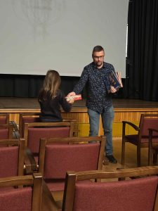 Po seansie przyszedł czas na quiz z nagrodami. Pytania dotyczyły filmu. Rywalizacja była zacięta, ale przebiegała w duchu dobrej zabawy. Najlepsi uczestnicy otrzymali nagrody w postaci książek i kolorowanek, a pozostali – pamiątkowe zakładki oraz słodycze.