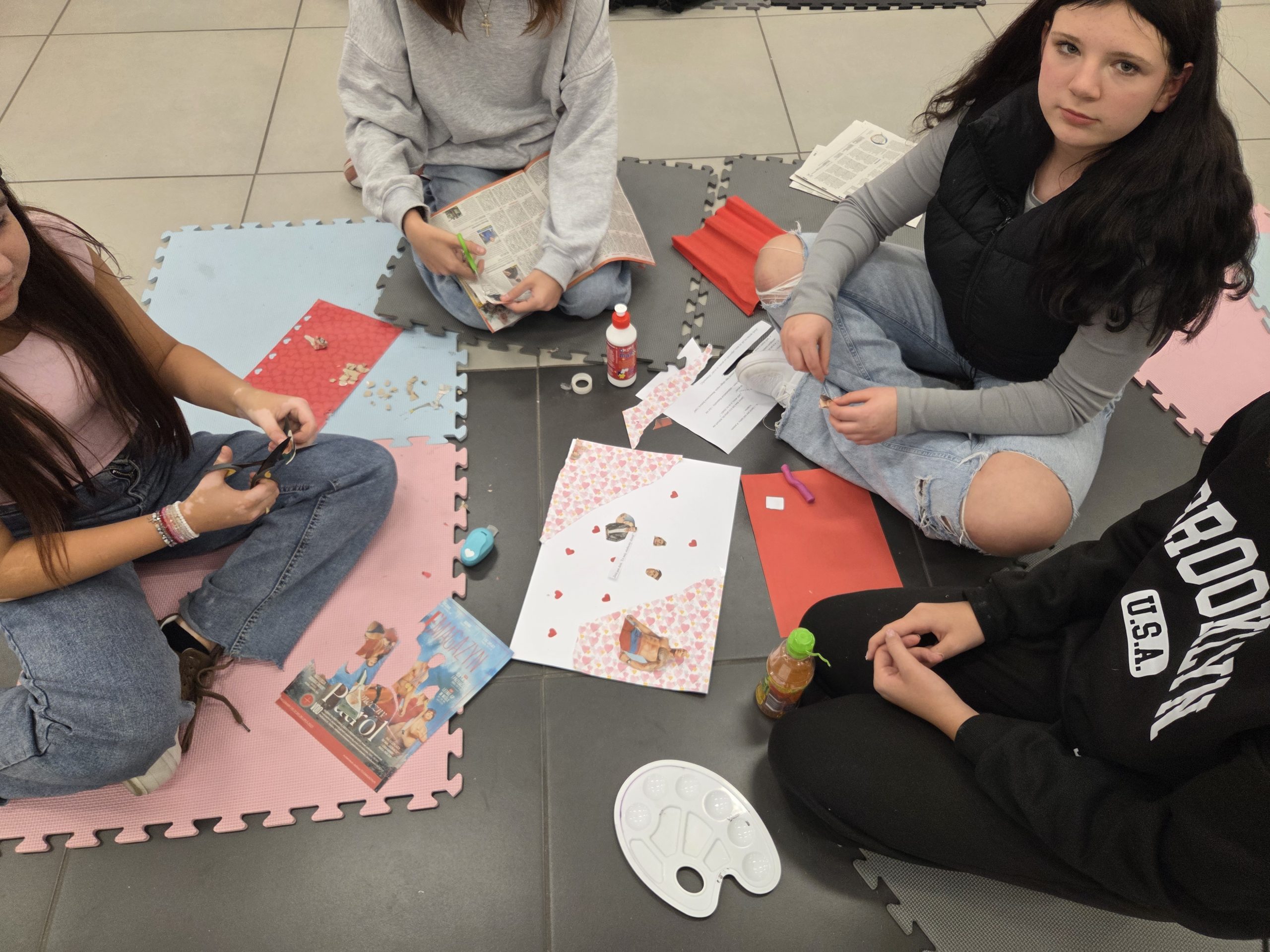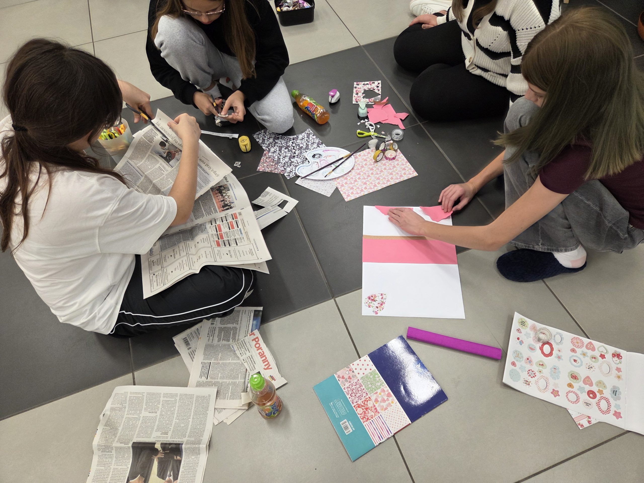 Po chwili na wspólną przekąskę – własnoręcznie przygotowane kanapki, owoce i słodkości – młodzież wróciła do pracy twórczej. W literackim bloku spotkania uczestnicy stworzyli collage z cytatem.
