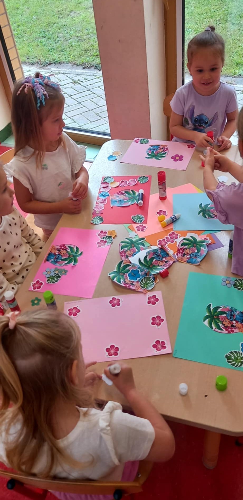 Na zakończenie maluchy stworzyły kolorowe wyklejanki, dając upust swojej kreatywności i wyobraźni.