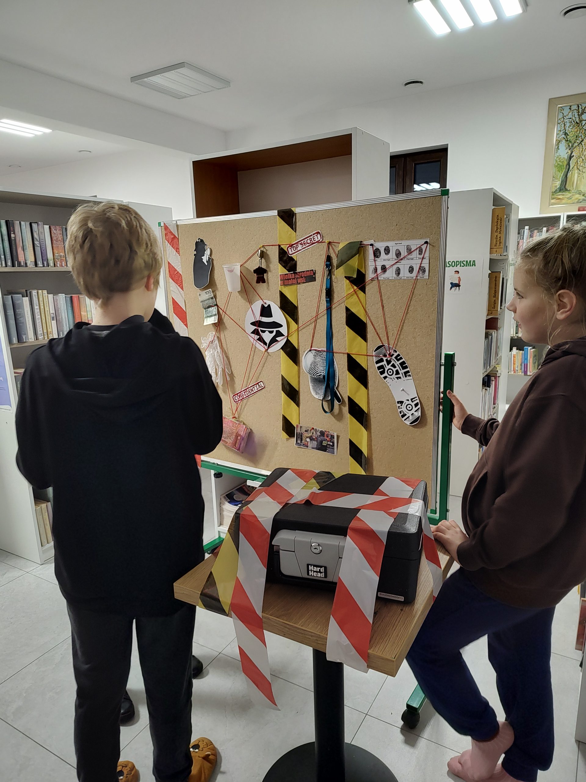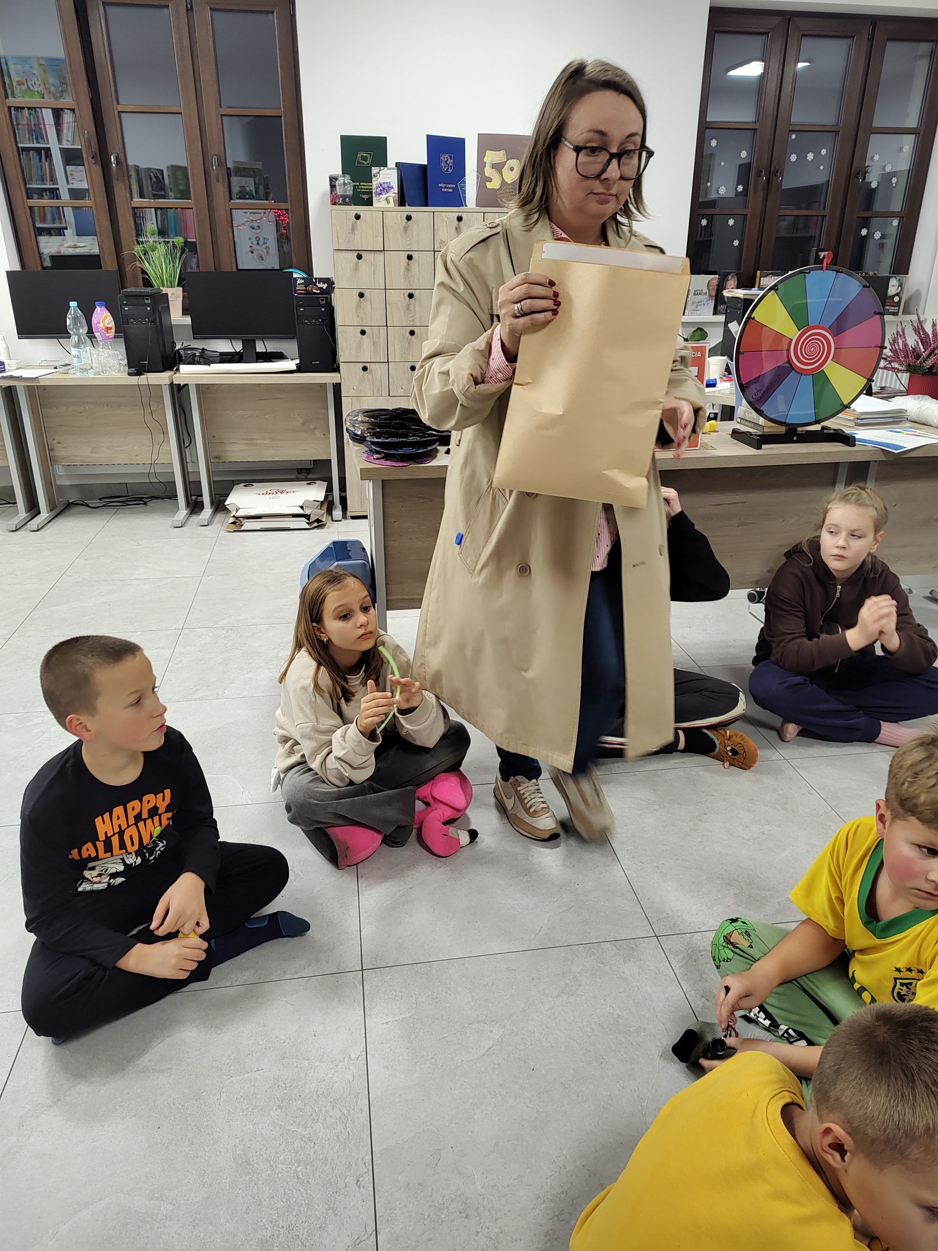 Do rozwiązania było kilka emocjonujących zadań detektywistycznych. Dzieci i młodzież stanęły przed nie lada wyzwaniem – odnalezieniem skradzionego klucza do sejfu. Wszyscy ochoczo przystąpili do dzieła! Tropienie śladów i rozwiązywanie zagadek wymagało sprytu i współpracy. Wspólnymi siłami klucz został odnaleziony, sejf otworzono i bardzo sprawiedliwie podzielono się skarbem:)