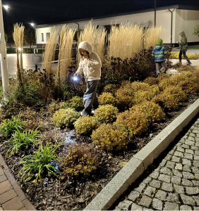 Wzmocnieni aromatyczną pizzą wyruszyliśmy na nocne zabawy w terenie z opaskami fluo, które dodały całemu wydarzeniu niezwykłego klimatu. Odbyliśmy nocne safari wypatrując z latarkami ukrytych zwierząt. Radości z odkryć kolejnych gatunków zwierzaków było co niemiara.