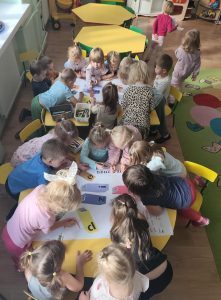 Jednak Gminna Biblioteka Publiczna w Sterdyni w ramach obchodów Nocy Bibliotek, zorganizowała jeszcze inne wydarzenia, które wcześniej nie były zaplanowane. Na wstępie bardzo serdecznie dziękujemy za otrzymane od Państwa materiały w ramach Nocy Bibliotek. Państwa plakaty, reklamujące wydarzenie okazały się niezwykle ważnym elementem przedsięwzięcia. W promocji obchodów Nocy Bibliotek pomogły nam dzieci z Gminnego Przedszkola w Sterdyni, które swoimi raczkami przepięknie „zmalowały” plakaty, zachęcając tym samym do przyjścia do Biblioteki na zaplanowane spotkania. Przedszkolaki wykazały się niezwykłą kreatywnością, ozdabiając plakaty promujące Noc Bibliotek, które zawisły na sterdyńskich okrąglakach. W ramach Nocy Bibliotek w godzinach porannych Gminną Bibliotekę Publiczną w Sterdyni odwiedziły właśnie dzieci z Gminnego Przedszkola w Sterdyni wraz z opiekunami. Podczas spotkania z dziećmi poruszone zostały tematy o zwierzątkach. Opowiadały one o swoich ulubionych zwierzątkach, szczególnie pieskach, a także poznawały innych książkowych psich bohaterów i przygody zwierzaków, które często są bardzo podobne do naszych. Z wielką radością prezentowały swoich ulubieńców z książek, które można było obejrzeć na przygotowanej wystawce. Dzieci dowiedziały się bardzo dużo o emocjach, które towarzyszą zarówno zwierzętom, jak i dzieciom w różnych codziennych sytuacjach. Nasi najmłodsi uczestnicy, za swoje zaangażowanie w realizację projektu oraz kreatywność zostali nagrodzeni otrzymanymi od Państwa zakładkami oraz naklejkami.