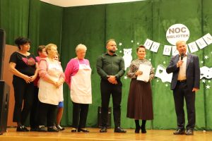 Nie zabrakło również atrakcji dla dorosłych uczestników – mogli oni sprawdzić swoją wiedzę w quizie o bibliotece, a także skosztować potraw przygotowanych przez Koła Gospodyń Wiejskich z Pniowa, Chwałowic, Łążka Chwałowskiego oraz przez uczestników Dziennego Domu Senior+ w Pniowie.