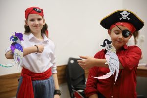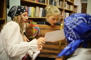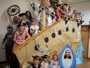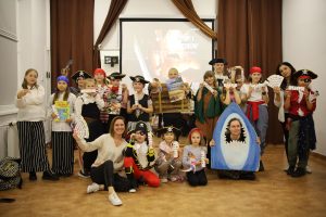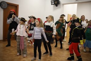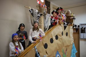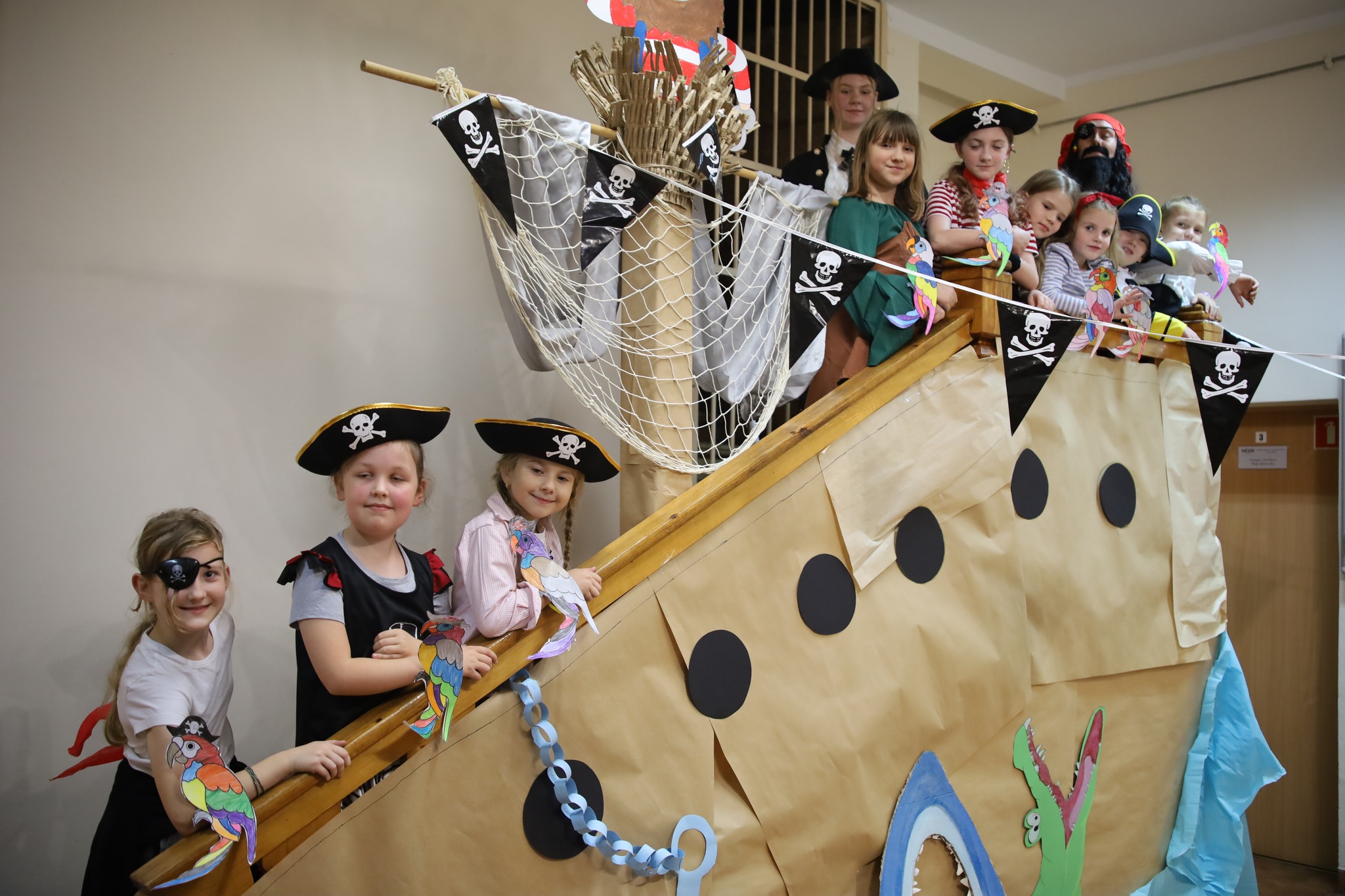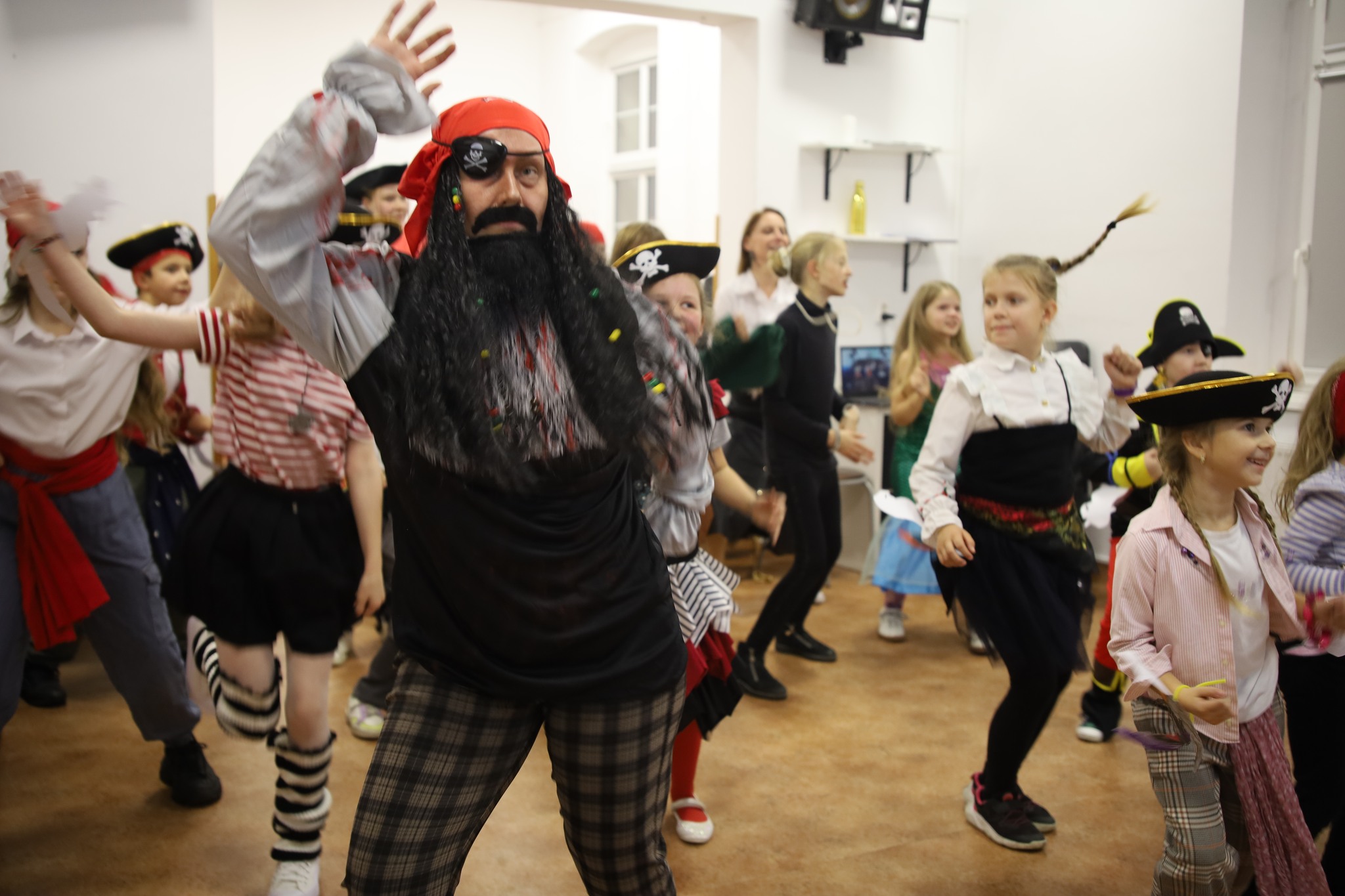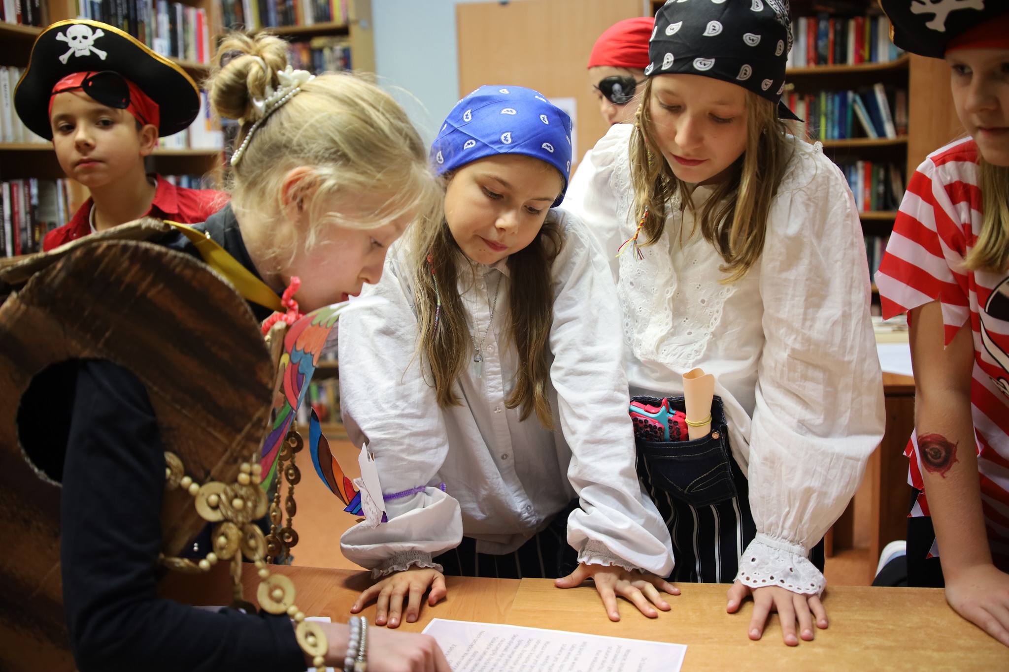 Kapitan statku tak skierował stery, aby zagwarantować podróż w stronę dobrej zabawy. Piracka wyprawa była niemałym wyzwaniem dla załogi. Obfitowała bowiem w różne działania, które utrudniały wzburzone fale i niesprzyjające wiatry. Jednak dzielna załoga odważnie stawiła czoła wszelkim przeciwnościom, przebyła biblioteczny escape room i w efekcie rozszyfrowała niezwykle zagadkową mapę, która zaprowadziła ich do skarbu. Kiedy piracka łajba wypłynęła na spokojniejsze wody opodal Wysp Bibliotecznych, załoga zgrupowała się w dogodnym miejscu i wysłuchała historii o wyprawach morskich. Opowieści te były zajmujące, gdyż obrazowały przygody pirackiej załogi mierzącej się z podobnymi zadaniami. Literacki akcent wyzwolił w załodze chęć kreatywnych działań, w wyniku których zaroiło się od pirackich papug, którym nadano oryginalne imiona. Kiedy jednak mocniej zakołysało łajbą załoga się ożywiła i oddała się muzyce i zabawie.