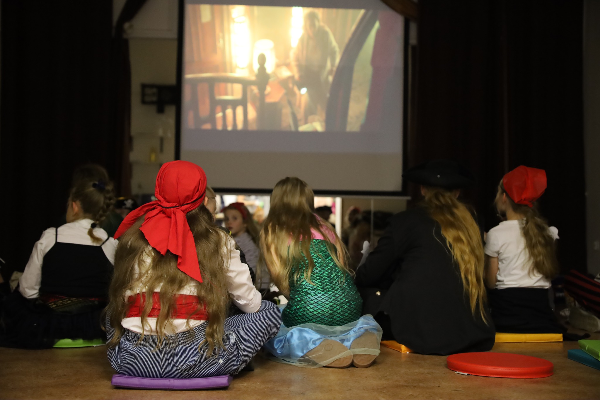 W wyniku głosowania wyłoniono i nagrodzono najbardziej kreatywne i niepowtarzalne stroje dzieci, nawiązujące do piratów. W spokojną, gwiaździstą Noc Bibliotek statek niesiony prądami morskimi kontynuował swój piracki rejs. Załoga ponownie zgrupowała się, by skorzystać z kolejnej atrakcji w formie seansu filmowego pełnego detektywistycznych wątków. Fabuła filmu zabrała załogę między innymi do pociągu i na stację kolejową, by tam zdemaskować rabusia.