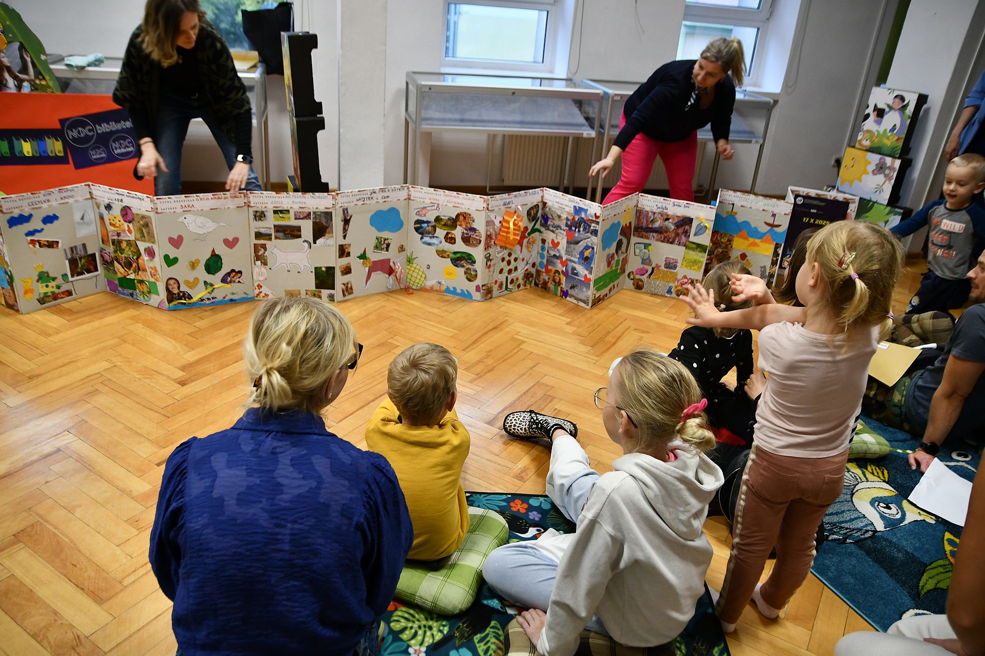 Warsztaty kreatywne dla rodzin "Maluchy do dzieła!" okazały się wyjątkowe. Królowały na nich wyobraźnia, kolor i dobra zabawa. Uczestnicy stworzyli swoje własne dzieła techniką leporello – rodziny przygotowały autorskie rozdziały i nadały im niepowtarzalne tytuły. Na koniec wszystkie prace połączyliśmy w jedną wspólną opowieść – pełną barw, emocji i rodzinnych opowieści.