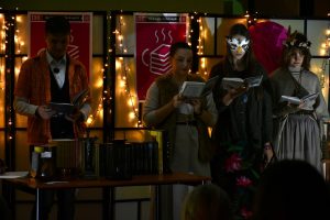 Zaczęliśmy od performatywnego czytania fragmentów "Dziadów cz. II" Adama Mickiewicza (reż. Gabi Jarzębowska):