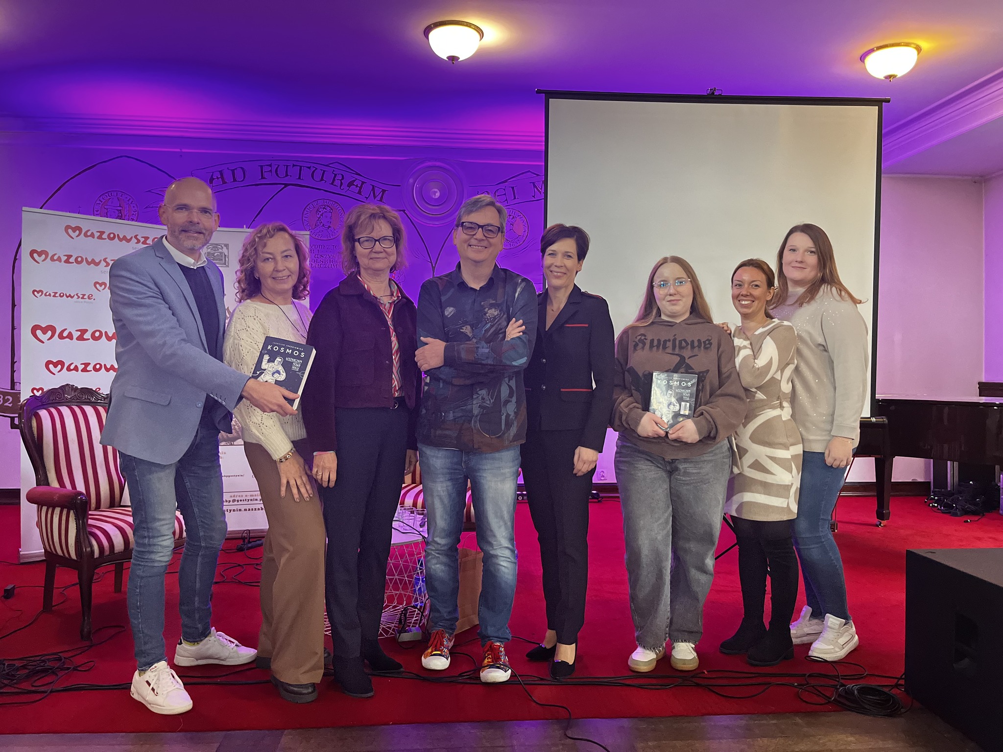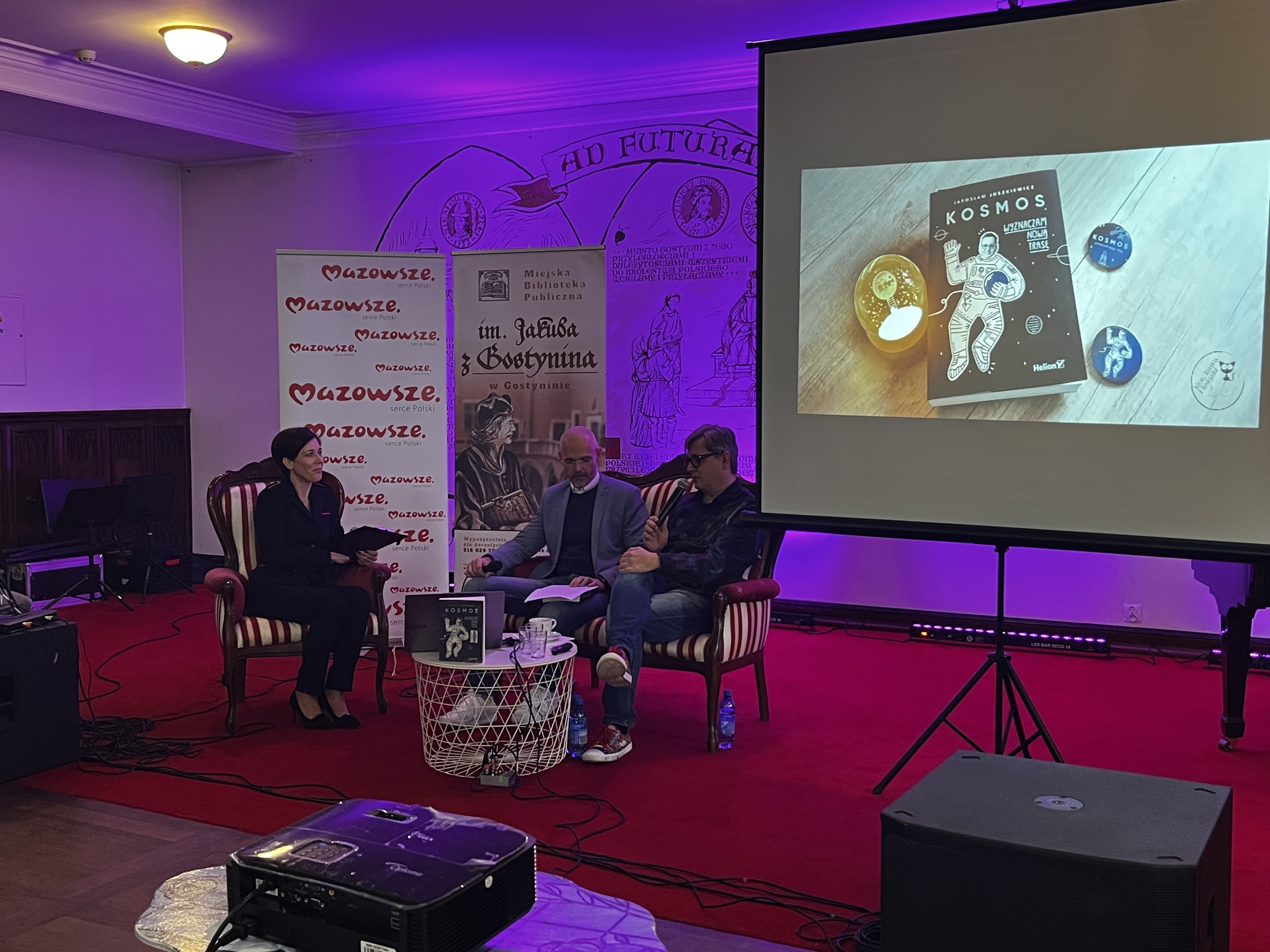 Następnego dnia (16.10) gościem biblioteki był Jarosław Juszkiewicz – dziennikarz radiowy, popularyzator nauki, dawny głos systemu nawigacji Google Maps oraz autor książki „Kosmos – wyznaczam nową trasę”. W rozmowie z dyrektor biblioteki Kamillą Ostrowską i Tomaszem Balcerzakiem opowiadał o swojej pracy w radiu, dziecięcych fascynacjach kosmosem i o tym, jak pasja potrafi stać się drogowskazem w życiu. Uczestnicy spotkania mieli okazję nie tylko posłuchać inspirujących historii, ale też zobaczyć, że nauka i wyobraźnia mają wspólny język.