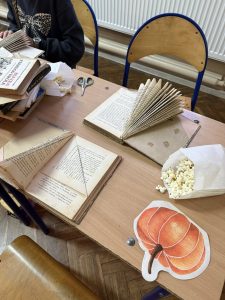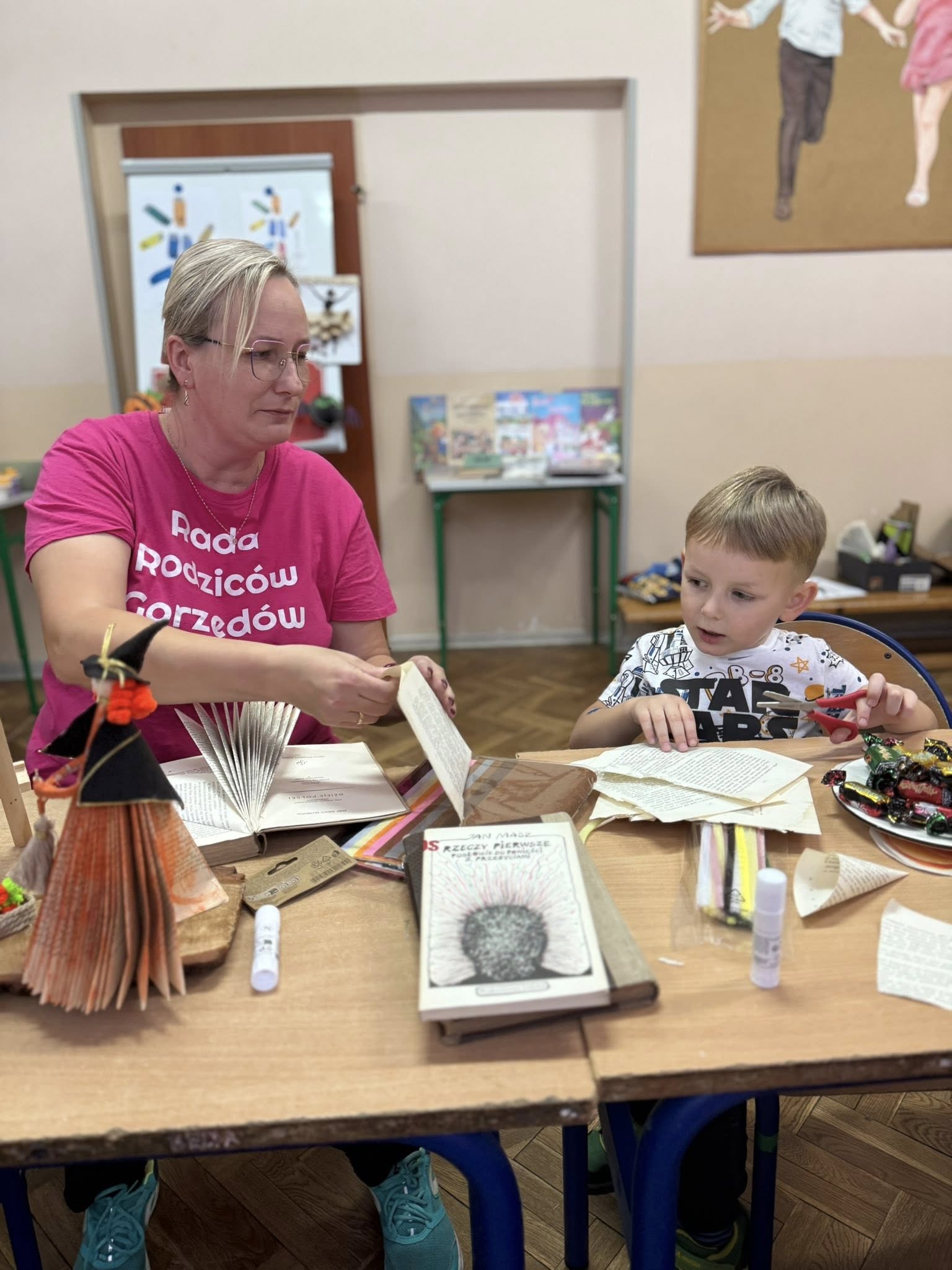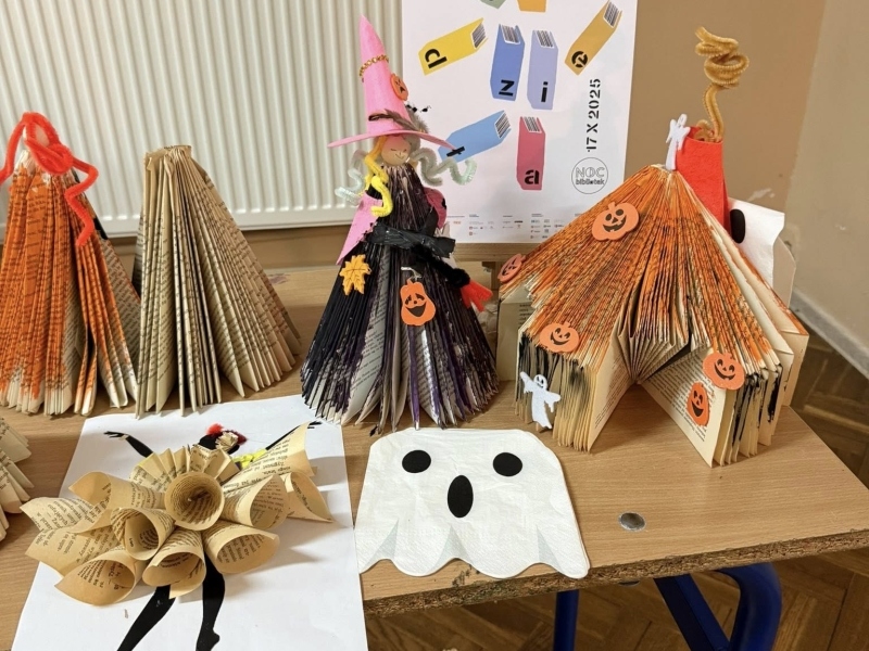 -17 października 2025 r. o godz.17 spotykaliśmy się w Szkole Podstawowej w Gorzędowie i przez dwie godziny ze starych książek tworzyliśmy papierowe wiedźmy oraz baletnice, były również wspólne dyskusje o książkach